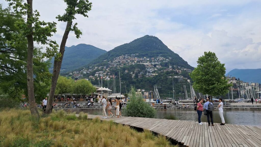 Це вже наше третє озеро цього регіону. Якщо раніше я міг порівнювати Комо та Гарду, то тепер ще й Лугано. Порівняти важко, бо всі три озера красиві, єдине що у італійських більше додаткових міст, які можна подивитися на озері. Тут можливо теж, але пором стільки коштує, що можна і просто по Лугано погуляти. Перший вечір ми безцільно блукали в усіх напрямках і знайшли справжню зону релаксу. Тут річка впадає в озеро, люди і качки відпочивають немов рідні.