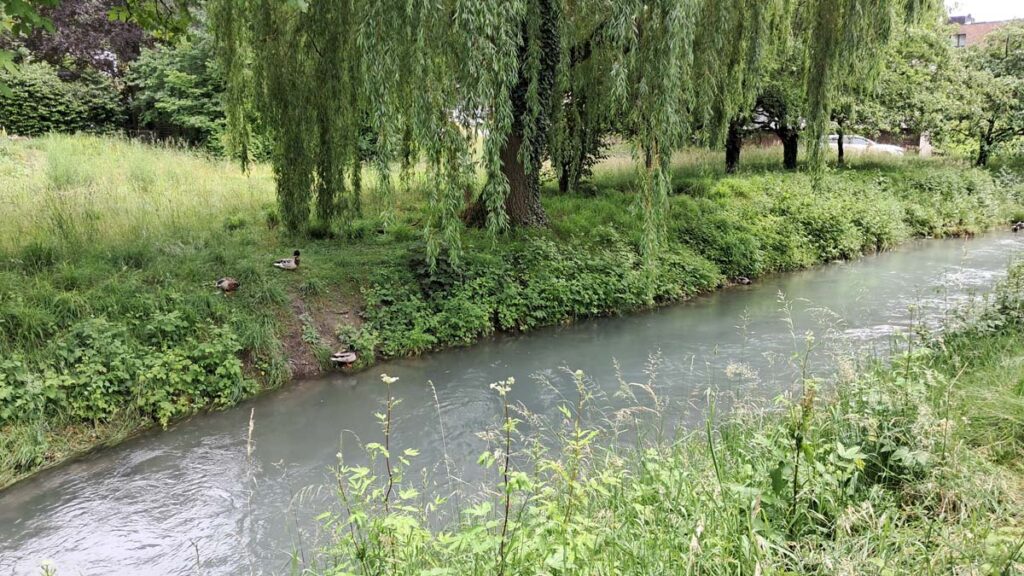 Тут гуляють люди, начебто в годині їзди немає ніякого фантастичного водоспаду. Качечки плавають по річці по своїх качиних справах. Вздовж річки простягаються рейки дитячої залізниці, але поїзд на жаль сьогодні не ходив.
