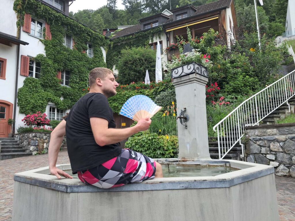 Томас в загальних рисах пояснив деталі сюжету, але питань було більше ніж відповідей. Потім я запитав штучний інтелект, і мені здалося, що навіть штучний інтелект не до кінця зрозумів усі нюанси вистави. Наступного дня по усьому швейцарському кантону було тільки і розмов про сюжет вистави. Цей театр проходить кожні чотири роки і цього разу була сота річниця. Мені зазвичай важко заходять абстрактні сюжети, але цей театр зміг утримати мій фокус усі півтори години. Через чотири роки буде той самий сюжет, але може бути поставлений зовсім по-іншому. Тож мені тепер цікаво ще раз подивитися спектакль через чотири роки. Після театру ми пішли в місцевий паб містечка Ейнзідельн для обміну враженнями. В пабі наше культурне збагачення продовжилося, мені принесли місцеве пиво і знайомі почали розповідати історію міста і чому на пиві намальовані ворони. Якби мені колись сказали, що я буду обізнаним в історії невеликого швейцарського міста, я б дуже здивувався. Але перейдемо до початку подорожі. Швейцарія, як і країни Азії, це своєрідний ретріт красивою природою, у цій країні взяті кращі місця наших Карпат, додані озера, ріки та водоспади.