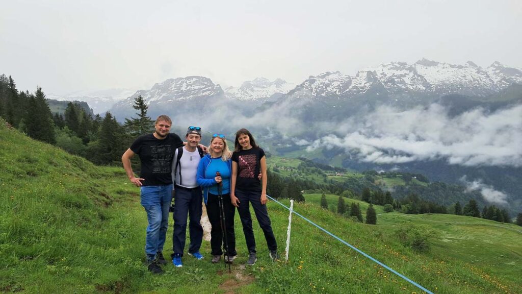 Щойно ми виїхали з мальовничого Ліхтенштейну, як види стали ще вдвічі мальовничишими, а гори ще вищими. Знову з’явилося те приємне відчуття, коли зайвий раз боїшся сходити до туалету в поїзді, щоб не пропустити чергову швейцарську красу за вікном. І те приємне відчуття коли усі поїзди між собою ідеально синхронізовані. Наші друзі Таня із Томасом нас зустрічали в Ейнзідельні. Це була дуже радісна і тепла зустріч.