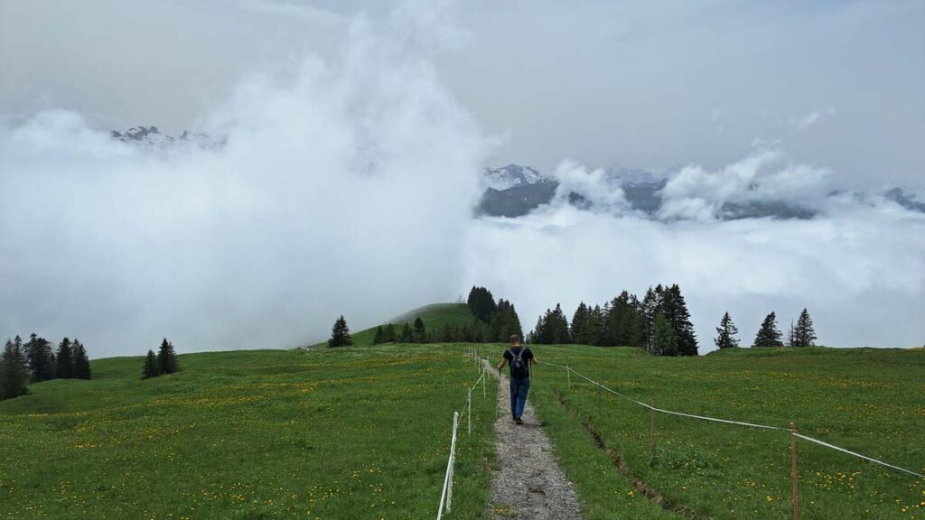 Я б з радістю написав, що це один з найкрасивіших трекінгів, але у Швейцарії некрасиві трекінги схоже законом заборонені. Тому куди не підеш завжди буде красиво, а якщо все закрило туманом, то ти маєш уявою домальовувати як тут усе красиво. Сьогодні нам пощастило і маршрут показав усю свою красу.