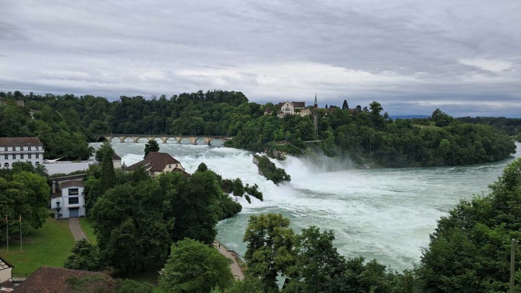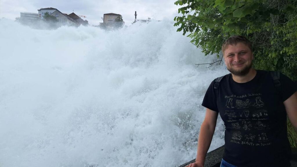 Чим далі ми їхали на поїзді, тим простіше ставали види. Навіть трохи не вірилося, що у Швейцарії є не гірська місцевість. Тепер було доволі схоже на українські лани. Даша на мене подивилася і перепитала чи я впевнений, що водоспад того вартує. Але варто було тільки приїхати на зупинку, одразу стало зрозуміло, що такого масштабу водоспад вартує навіть окремої подорожі.