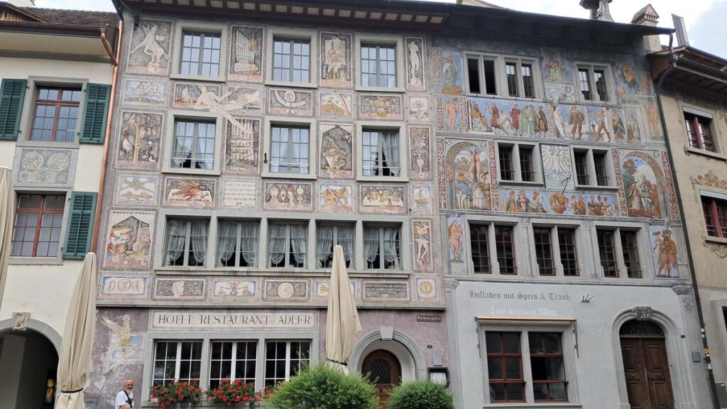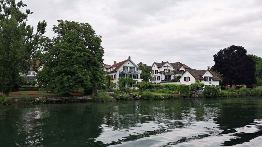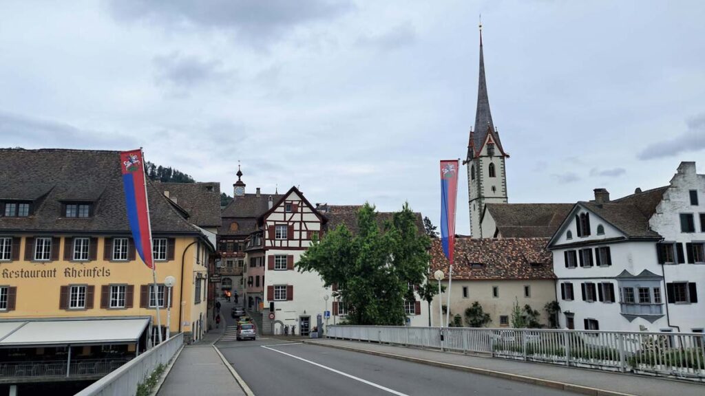 Пречудовим доповненням до бурхливого водоспаду буде дуже спокійне і затишне місто на річці Рейн. Сюди їхати близько години. Місто дуже мальовниче і на фоні попереднього – спокійне. Будинки розмальовані неймовірними розписами, не місто – а писанка!