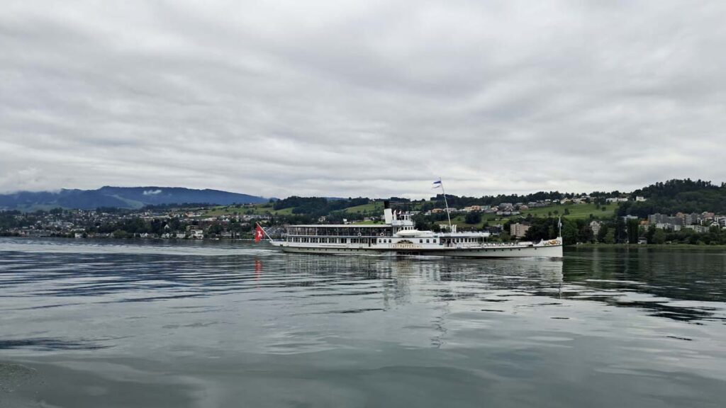 Тут ми зустрілися з Танею, у Бургер Кінгу з’їли унікальний місцевий бургер, який в минулій подорожі не знайшли та пішли гуляти в сторону озера. Щоб гулялося смачніше, ми закупили швейцарських цукерок і тут був цікавий момент, такі ж самі цукерки продаються в Польщі та вони дійсно не такі смачні як у Швейцарії. Я б описав Цюрих як непогане місто, але краса Швейцарії криється в маленьких містечках та селах. Тож ми затарилися безалкогольним промоційним сидром, купили пляшку рому і відправилися в круїз на поромі по великому озеру.