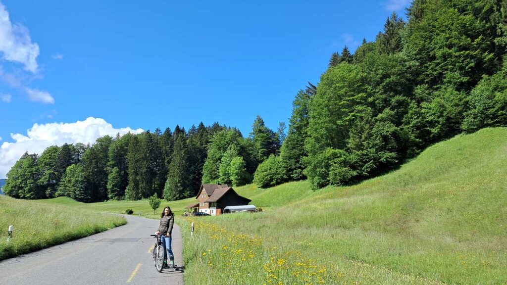 Так і тут в подорожі треба надивитися на все максимально, а надивитися чесно кажучи неможливо. Наступний день був робочий, ми з Дашею вдвох поїхали на велосипедах досліджувати приховану красу гір. У напрямку села Studen виднівся водоспад. Треба б його перевірити. У Швейцарії є умовний мінус, це гірська країна і рівні дороги тут доволі рідкісні. Тож доведеться попедалити трохи вгору.