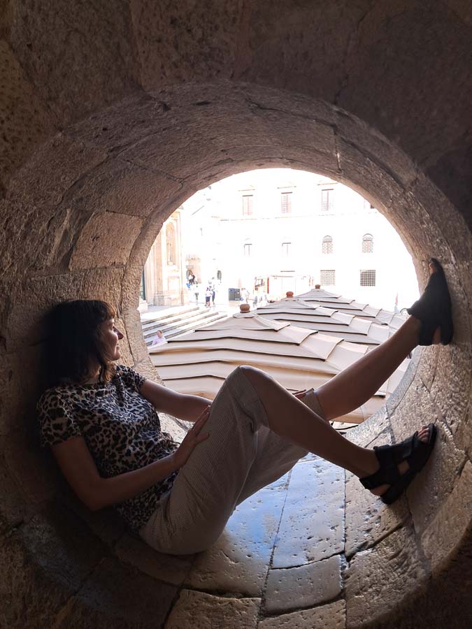 Ото звісно мінус подорожувати із нами, бо любиш-не-любиш гори, а доведеться лізти, бо ми їх завжди знайдемо. Із плюсів підйому по дорозі ріс гранат, із мінусів, він був ще не стиглий і кислий. На середині підйому ми зустріли жінку, яка спускалася. Вона сказала, що доки піднімалася, то впала і передумала підніматися. Та й взагалі скоро сонце сяде. Я подивився на сонце, яке здається найближчі два тижні загалі сідати не збирається і буде випалювати нас спекою, дивно, але продовжимо маршрут. Підйом в спеку виявився не настільки пекельним як ми очікували, тепер тільки знайти б де набрати води. А он і закритий ресторан із умивальником. “Але ж там немає ручки на крані!” схвильовано сказала Даша. “Це не проблема для справжнього інженера!” – сказав я і, на щастя, знайшов ручку, що валялася поруч. А ось відсутність води у самих трубах виявилася проблемою для інженера. Поруч проходила місцева жінка і запитала, чим може нам допомогти?