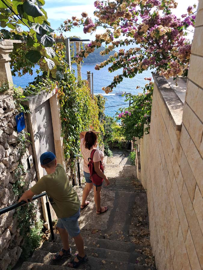 Є два правила у подорожах. Якщо є гора – треба залізти, якщо острови – сплавати на них. Сьогодні у нас острівний день. Крім старого міста в Дубровніку є інший пірс, звідки відправляються пороми по ціні громадського транспорту. Бо в старому місті тільки за всі гроші світу був кораблик. Взагалі виходить жити треба не обов’язково біля старого міста, бо об’єктивно там погуляти пів дня за всю подорож в самий раз. Все інше знаходиться за його стінами. Приблизно за годинку ми висадилися на острові. І як в кращих жанрах, цей острів теж мав доволі високу гору. Тож вьйо на трекінг!
