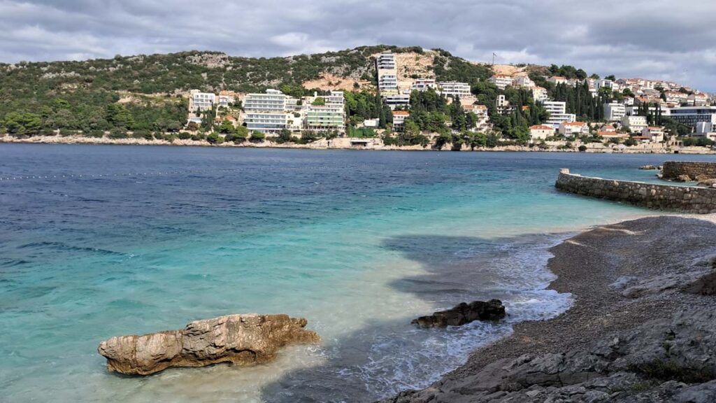 Але, якщо у вас апартаменти зі своєю кухнею то вам не варто переживати за те, що доведеться їсти піцу Маргаріту за всі гроші світу) Погуляли старовинними вуличками міста, вони тут прямо еталонні, щедро вмилися хвилею моря, яка нас накрила на пірсі. Ну що ж, море не дуже холодне, можна й поплавати спробувати. Але спочатку дізнаємося, як дістатися до острова Локрум. Нам повідомили, що сьогодні туди не можна, бо приїхав сам президент України! Ми вже не вперше прилітаємо разом із президентами України в якесь місто, схоже вони так само класно полюють на акційні квитки, або стежать за нашими маршрутами. Ну добре, пішли тоді пообідаємо в місцевій пекарні, а в сусідньому магазинчику можна взяти смачненьке капучино. Але сталося несподіване, прямо при мені працівниця звільнила кавомашину. Тобто прямо так їй і сказала, коли замість лате я отримав велику склянку молочної пінки. Тепер додамо туди кави з термоса Ані і вийде справжнє лате. Далі була трапеза на березі моря, але сонце смажило з такою силою, що борек в руках починав шкварчати. Так, побігли купатися у те бурхливе морько. Вода фантастичного кольору, доволі прохолодна.