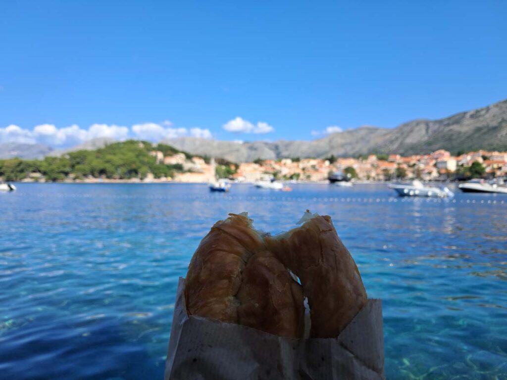 Ніколи б не подумав, що в околицях Дубровніка стільки локацій. Ми поїхали дивитися міста у напрямку Чорногорії. По туристичному хорошому закону там одразу групка приємних містечок. Перше, що ми зробили по приїзду, пішли накупили собі буреків та інших смаколиків. Тепер треба прогулятися по хорватським напів хвойним паркам нагуляти апетит. Крута фішка цих країн це хвойні дерева над морем, мені здається це ідеальне поєднання краси природи. Як нагуляли апетит можна йти трапезувати на берегу цієї ідилії.