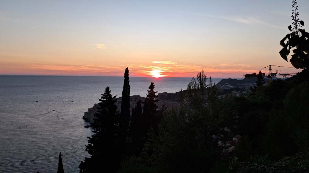 У Дубровнік ми прилетіли майже опівночі, місто нас зустріло щирою зливою. Було добре зрозуміло, що Хорватії на нас води не шкода! Таксі якось зовсім до нас не поспішали їхати, тож я вже боявся, що ми тут світанок ще зустрінемо. Звісно по 10 євро під зливою можна було поїхати кудись на автобусі, але таксі і дешевше і одразу в апартаменти, якщо приїде. На щастя, воно таки приїхало за нами. Тепер треба знайти апартаменти, в локації вказано, що орієнтир зупинки це синє авто на парковці. Цікаво, що те авто нас дочекалося, бо наступного дня його вже не було. У нас були розкішні двокімнатні апартаменти в дуже затишному місці та й сусіди були незвичайно тихими. З самого ранку ми дізналися секрет тихих сусідів, в притул до вікна було кладовище, таке невеличке та затишне. Хоча наступної ночі там було доволі шумно, спочатку закричала кицька, чомусь вираженим чоловічим голосом, а потім таке враження, що хтось спіткнувся і впав. Не знав, що там вночі настільки бурхливе життя. Але ми не за цим сюди приїхали. Поснідали, Аня набрала із собою термос кави і можна починати маршрут.