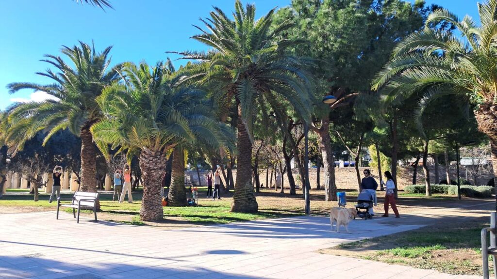 Окрім того, що тільки заради цього району має сенс прилітати, тут ще й дивовижний протяжний парк, замість річки Турія, що колись тут протікала (її русло було штучно змінено через катастрофічні повені). Парк зелений, з пальмами, пташками і йогами, на яких можна дивитися годинами. Шкода тільки, що тих годин ніколи не вистачає. Нам би взагалі пасувала б більша планета, де не так мало годин в одній добі.