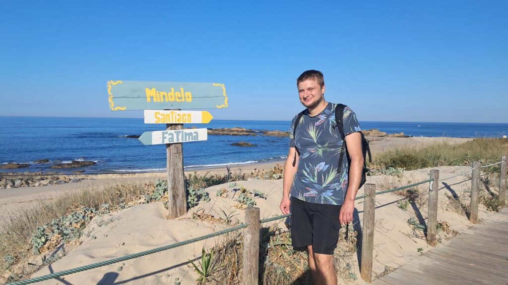 На вулиці ми випадково перетнулися з однією пані, з якою ще нещодавно сиділи за келихом вина і обговорювали пілігримські теми. Тепер же ми прості туристи в Порту, що випадково перетнулися і перекинулися словами про буденність каміно і коли треба йти наступне. Далі ми пішли традиційно завершити нашу сторінку каміно на самий початок маршруту до португальського храму. Ми, як і минулого року, подивилися у сторону Сантьяго-де-Компостела, але на цей раз вже з прощанням, оскільки останній португальський шлях ми завершили. У нас в запасі ще було кілька годин, тож ми вибрали для себе дерев’яні місточки, які вели кудись далеко за межі Порту і просто без цілі Зайка та Ведмідь пішли вдалечінь за горизонт.