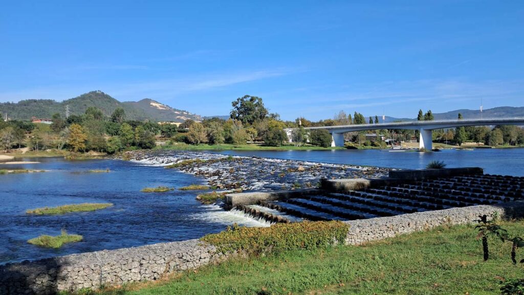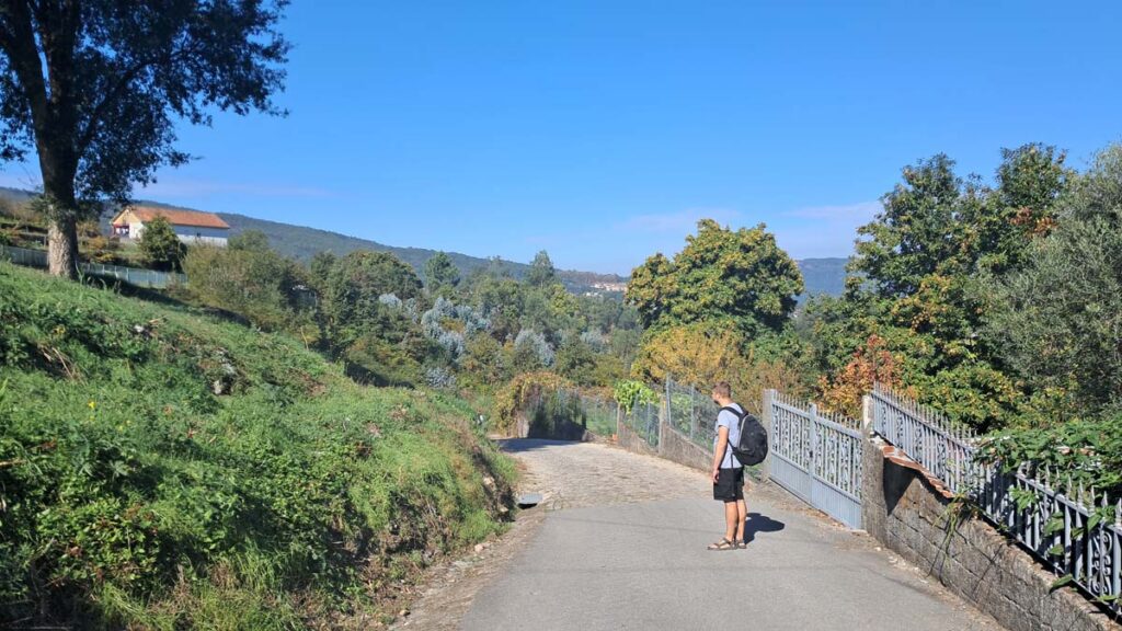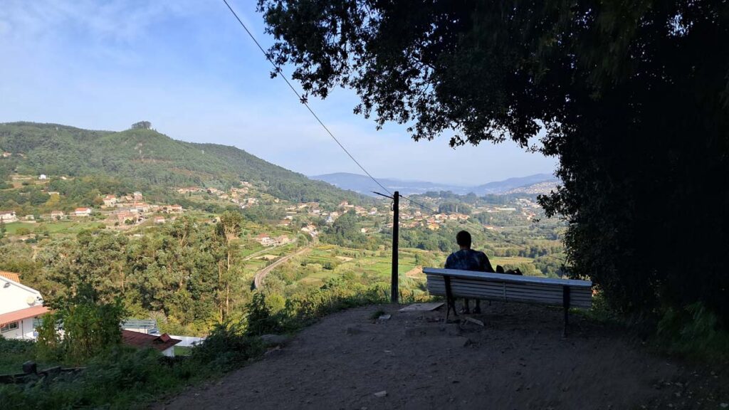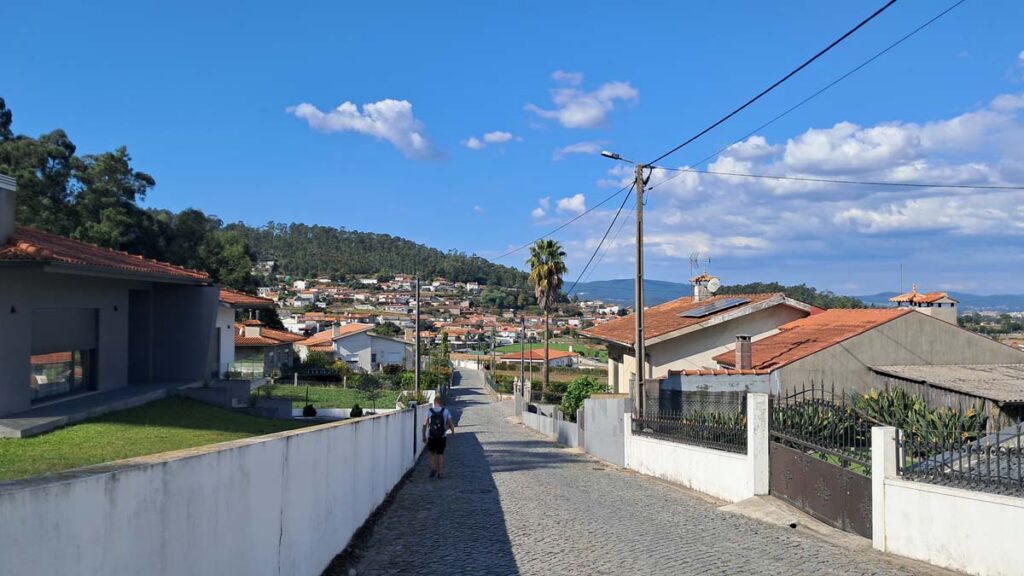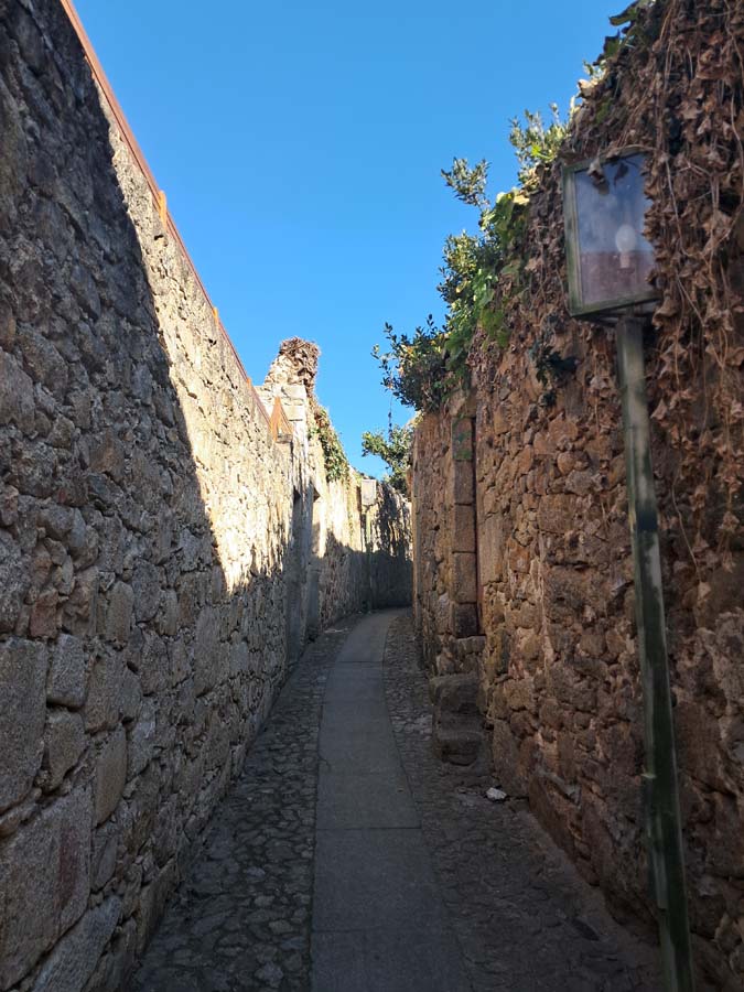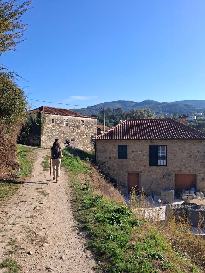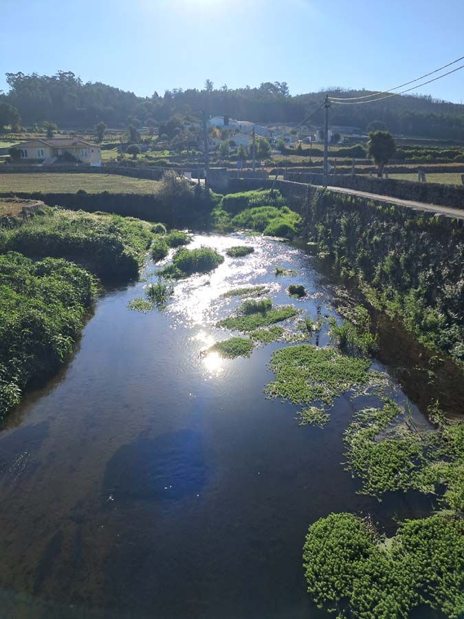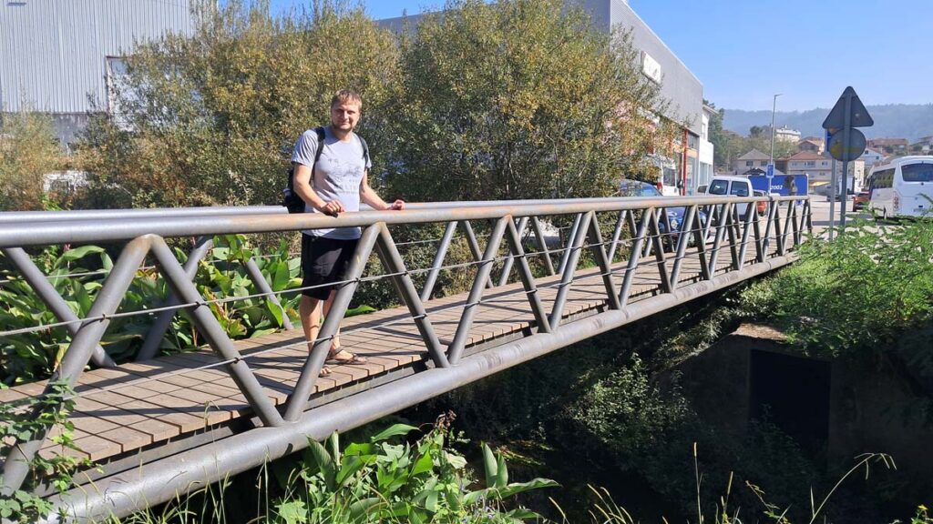 Це містечко до речі називається Туї. Воно затишне і кам’яне. Тут навіть собаки якось цікаво гавкають, вони начебто хочуть сказати “Бов-бов бом бом”. Що в перекладі з португальсої означає “Гав-гав приємного!”. Тож підозрюємо, вони нам бажали приємного каміно! А чому з португальським акцентом, бо мабуть мігрували сюди через міст. Здавалося б, ми просто перейшли міст, а тут вже все таке цікаве. О, а он і палошники – пілігрими із палицями для ходи. Минулого каміно ми себе називали шльопашниками, оскільки мій сандаль гучновато хлопав, а їх палошниками, бо гучно цокали. На цей раз мій сандаль не шльопав, мабуть тому нам і палошників майже не попадалося.