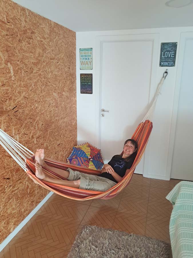 А ми тим часом пройшли дуже дивну гігантську бетонну будівлю і прийшли до нашого будиночку. Нас зустрів хазяїн і подарував нам дві чотирилисті конюшини на удачу! Будиночок був максимально затишний, навіть гамак висів усередині. Житло в цьому каміно приносило окрему ноту радості, люди розуміють, що вони здають житло на шляху пілігримів, тож в деяких мешканнях прямо відчувається тепло та любов.