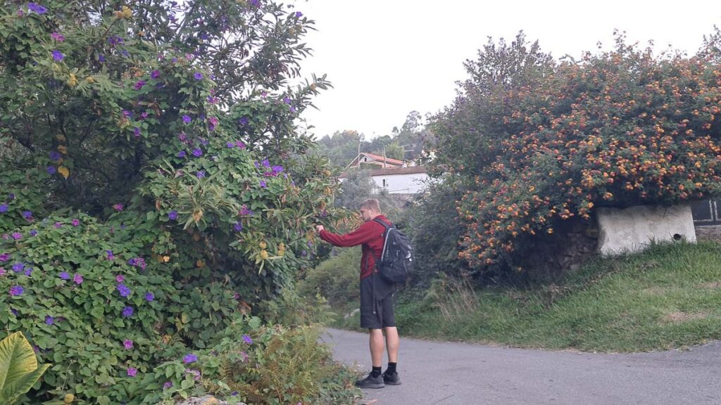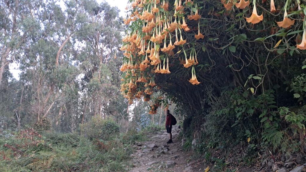 На обід у нас випало ласування свіжим апельсином, що на рідкість був стиглий і ріс на відстані витягнутої руки. Бо зазвичай до плодів треба стрибати, а цього під час каміно категорично не можна робити, щоб зберегти ноги. Ми ще наївно думали, що цей квітковий день буде найкрасивішим на маршруті, але вже вдруге переконуємося, що справжню перлину маршрут зберігає ближче до кінця.