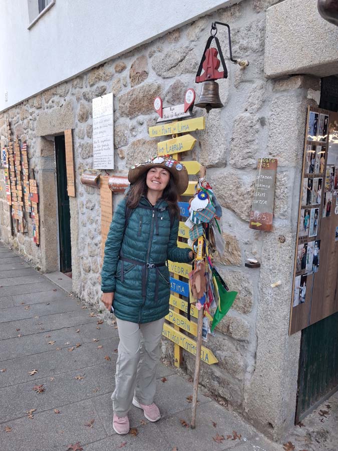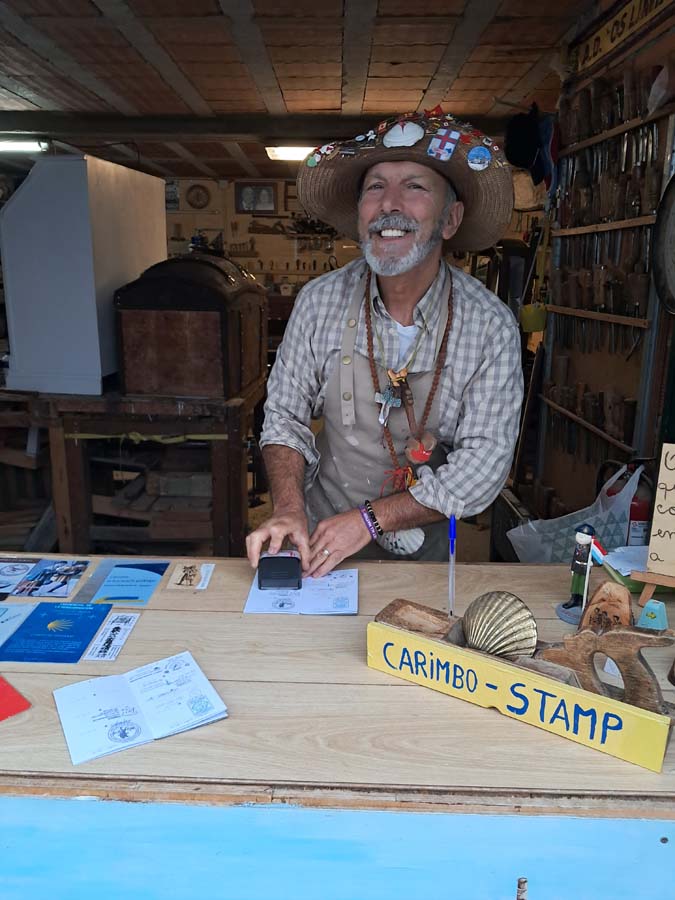 Які ж на центральному маршруті нам попадаються класні і незвичайні помешкання. Сьогодні у нас був власний двоповерховий будинок! На першому поверсі, правда, тільки сходи на другий, але власні! День почався з неймовірного заряду позитиву. Ми проходили через тематичну пілігримську лавку, в якій продавець живе заради того щоб любити пілігримів. У чоловіка своя майстерня і купа всяких цікавинок. Він нам поставив штампи, вдарив у дзвін два рази та на дерев’яній дощечці крейдою змінив цифру кількості відмічених пілігримів.