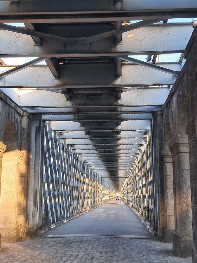 Перед нами міст, залишилося зробити кілька кроків у нову частину розповіді. Але так і бути, ще в португальських квіточках зробимо фотосесію і можна продовжувати. Ранкова Іспанія нас зустріла густим сонячним промінням, здавалося, що світло буквально ллється на все навколо. До нас підійшли німкені і запитали чи ми не з Німеччини часом. Це трохи дивний знак, але буде тепер над чим подумати по дорозі. Ми заскочили в ірландський паб набрати води і буди свідками, як чоловіку до кави подали найменше тістечко у всесвіті, яке ми тільки бачили. Ну значить, каву тут не треба пити, оцей знак зрозумілий, дякуємо за підказку.