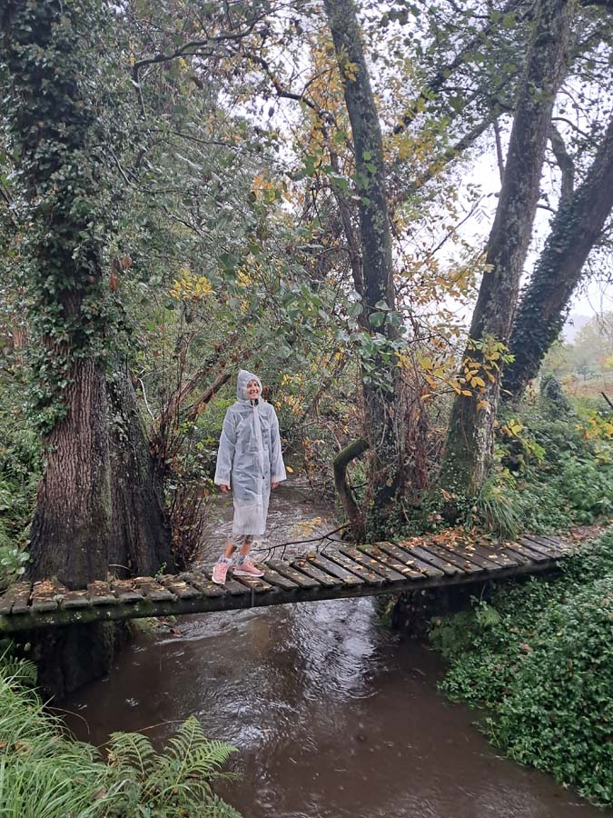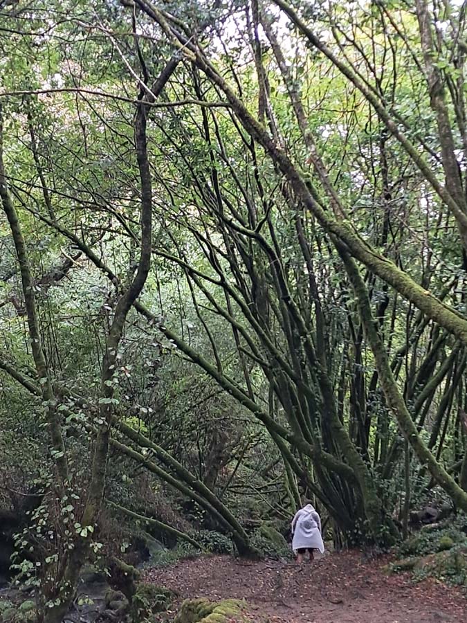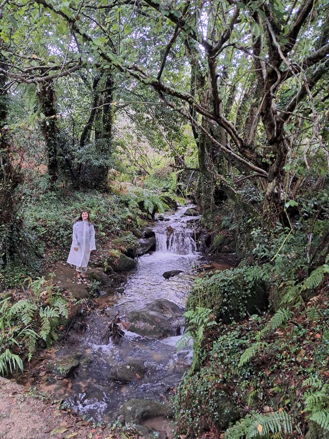 А може просто каміно вирішило, що нам треба пройти сьогодні саме стільки. За церквою починається спуск і найкрасивіша частина усього маршруту – тропічний, моховий ліс зі старовинними водяними млинами. В цей момент ти забуваєш про дощі, про мокрі ноги, взагалі про все, бо ця краса на яву! В лісі хотілося зазирнути в кожний закуточок, всюди сфотографуватися, та часу немає, сьогодні ще дуже-дуже довго йти.