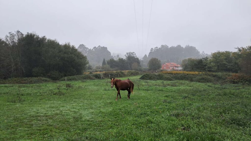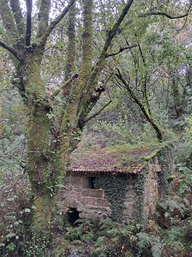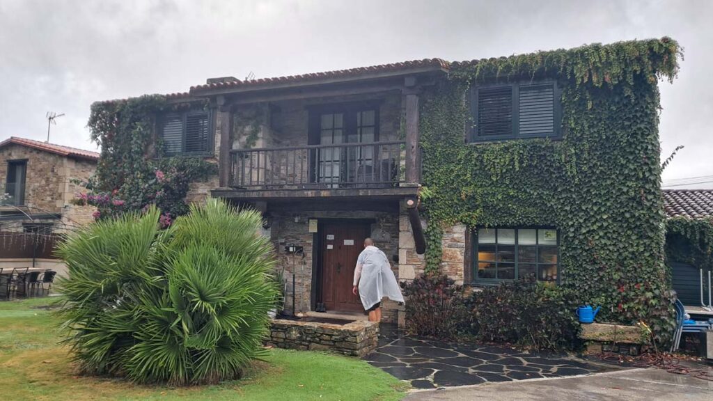 За лісом на нас чекало місто, де ми ночували минулого разу. По дорозі зайшли на рибний базар, до туалету. Продавчиня, коли мене побачила, щось співчуваючи почала мені розповідати іспанською, а чоловік їй щось пояснив і вона розуміючи кивнула. Мені здалося, що вона не розуміла, що мене могло змусити в таку негоду випертися на вулицю, а чоловік їй пояснив що це пілігрими, у них не особливо то є вибір. Добре хоч сьогодні маршрут не такий довгий, а минулого разу це місто було вже останнім. Годинки за три три ми допливли до кам’яного будиночку, де ми будемо сьогодні ночувати.