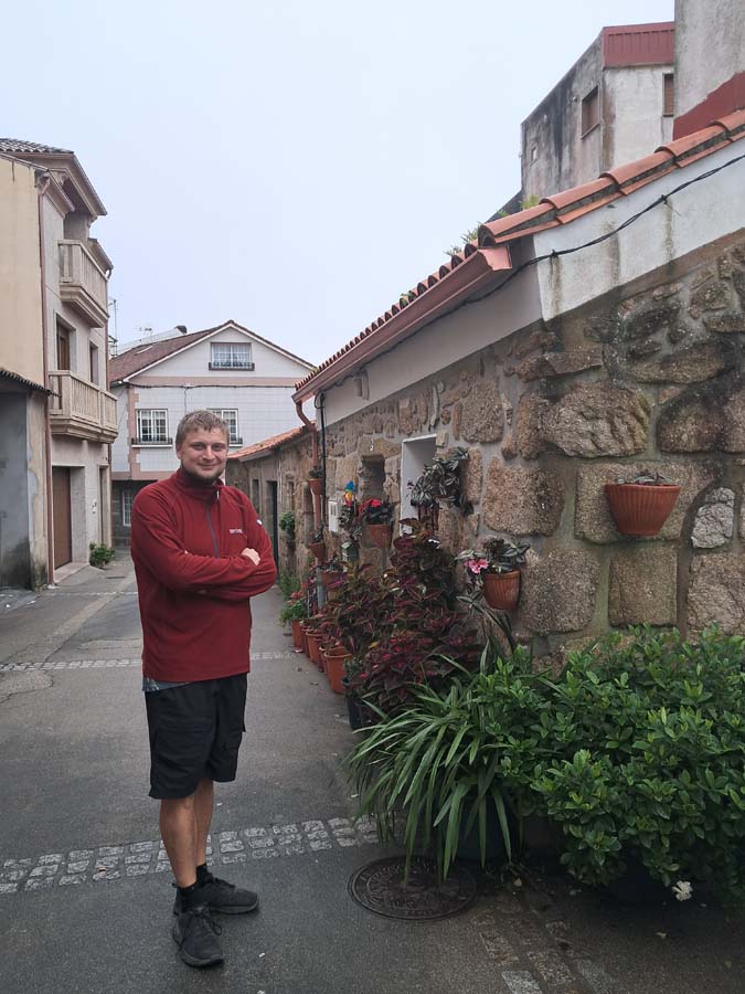 Кажуть, ми проходили іспанські Мальдіви, мабуть дуже красиві. Це коли ми вийшли до океану. У нас в той момент дощ був вертикальний з низу до неба. Та остання година була нескінченна. І навіть коли ми пройшли ту нескінченність, то виявилося що ще 40 хвилин йти. Але ж який був фантастичний фінал маршруту! Ми змучені, нескінченно мокрі та стомлені заходимо у номер, а там на нас чекає ванна! Ми набрали туди гарячої води і більше нічого для щастя потрібно не було. Ми зараз найщасливіші пілігрими у світі! Дякую каміно за цей сюрприз! У ванній ми просиділи максимально довго, відігрілися вже по повній. На кінець дня залишалася дрібниця, збігати в магазин через дорогу, купити картопляного пирога на вечерю. Проблема була в тому, що туди я ще проскочив, а ось у зворотному напрямку почалася злива максимальної потужності. Лише одна дорога відділяє мене від вхідних дверей готелю, а по вулиці, здається, зараз на човнах почнуть плавати. Але пиріг був дійсно смачний, ще й під гаспачо із хамоном.