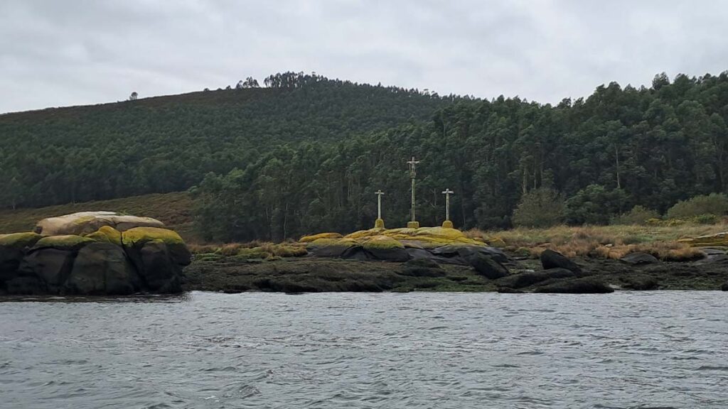 Маршрут мальовничій, тут і зупиночка біля збирачів мідій і розповіді про місцеві реліквійні хрести, а також сочок із круасанчиками на борту. І так цікаво, усі хто сидять у поромі, це такі ж пілігрими як і ми, люди, що зараз переслідують аналогічну мету, такі самі досвідчені мандрівники, за плечами котрих вже багато цікавих подорожей та історій. А також це ті самі пілігрими, що переживають рівно ту саму погоду що й ми. Одним словом, одразу видно – хороші люди.