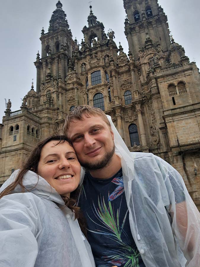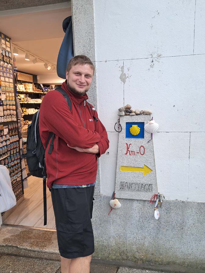 Цього разу ми не ночуємо у Сантьяго-де-Компостела, у нас буде вечірній автобус. Тож фінал маршруту вибудували доволі цікаво. Коли залишалося менше кілометра, ми пішли на обід у мексиканський Тако Бел і там у нас був фінальний кількагодинний відпочинок. З однієї сторони ми вже відчували себе переможцями, а з іншої до фіналу маршруту треба пройти ще п’ять хвилин. Це було вперше, коли відвідування конкретного закладу, ми запланували аж за два тижні. Хоча мені здається, я цей Тако Бел запланував ще минулого року, нам реально дуже зайшло. Після довгого відпочинку ми взялися за руки і пішли до фінальної точки – храму святого Якова.