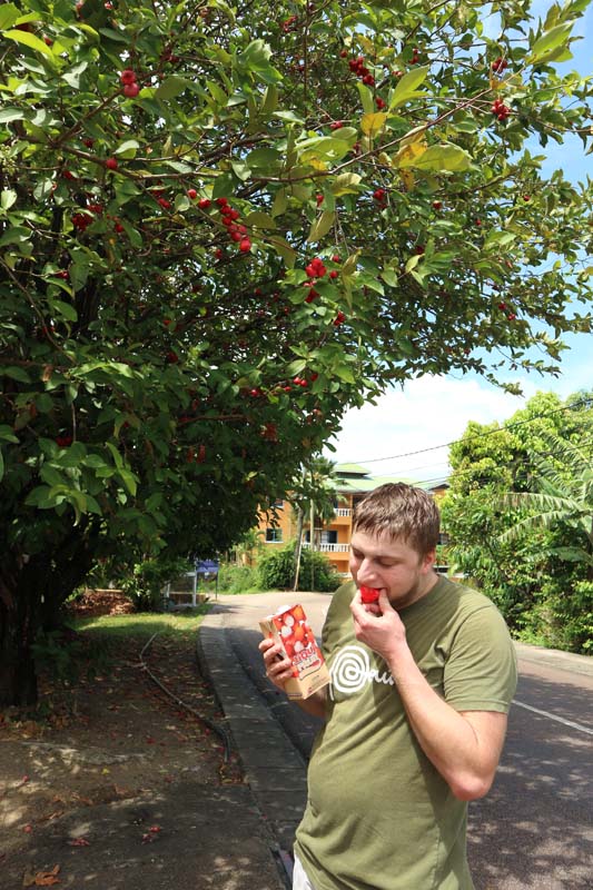 Поснідали. І пішли на зупинку чекати на автобус. Місцевих мешканців на зупинці не було – поганий знак. Натомість були аж двоє на протилежній. Коли наш автобус таки приїхав, дівчата з протилежного боку перебігли та сіли до нас в автобус. Мабуть, напрямок був не головним фактором у їхній поїздці. Ми приїхали на центральний автовокзал у місті Вікторія. Від вокзалу нам треба було доїхати до гірської траси. Від якої розходиться безліч трекінгових стежок. Потрібний автобус ходив трохи рідше за решту – раз на дві години. Але на щастя найближчий буде лише за 30 хвилин. Але зі зворотним доведеться добре вирахувати час. Приблизно за 6 годин ми пройшли два великі маршрути та частину самої траси. Ще в жодній країні ми не бачили настільки екзотичних та красивих джунглів. Пару разів траплялися звірятка на зразок їжачків, але без голочок, дуже милі, називаються Тернек.