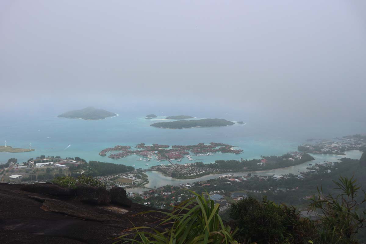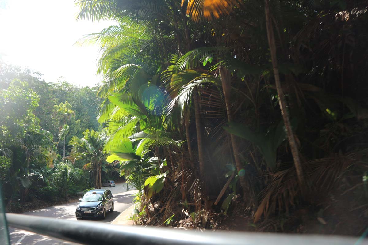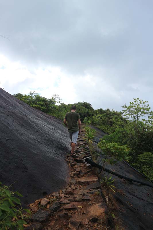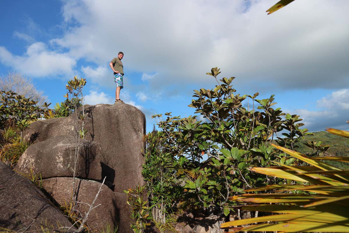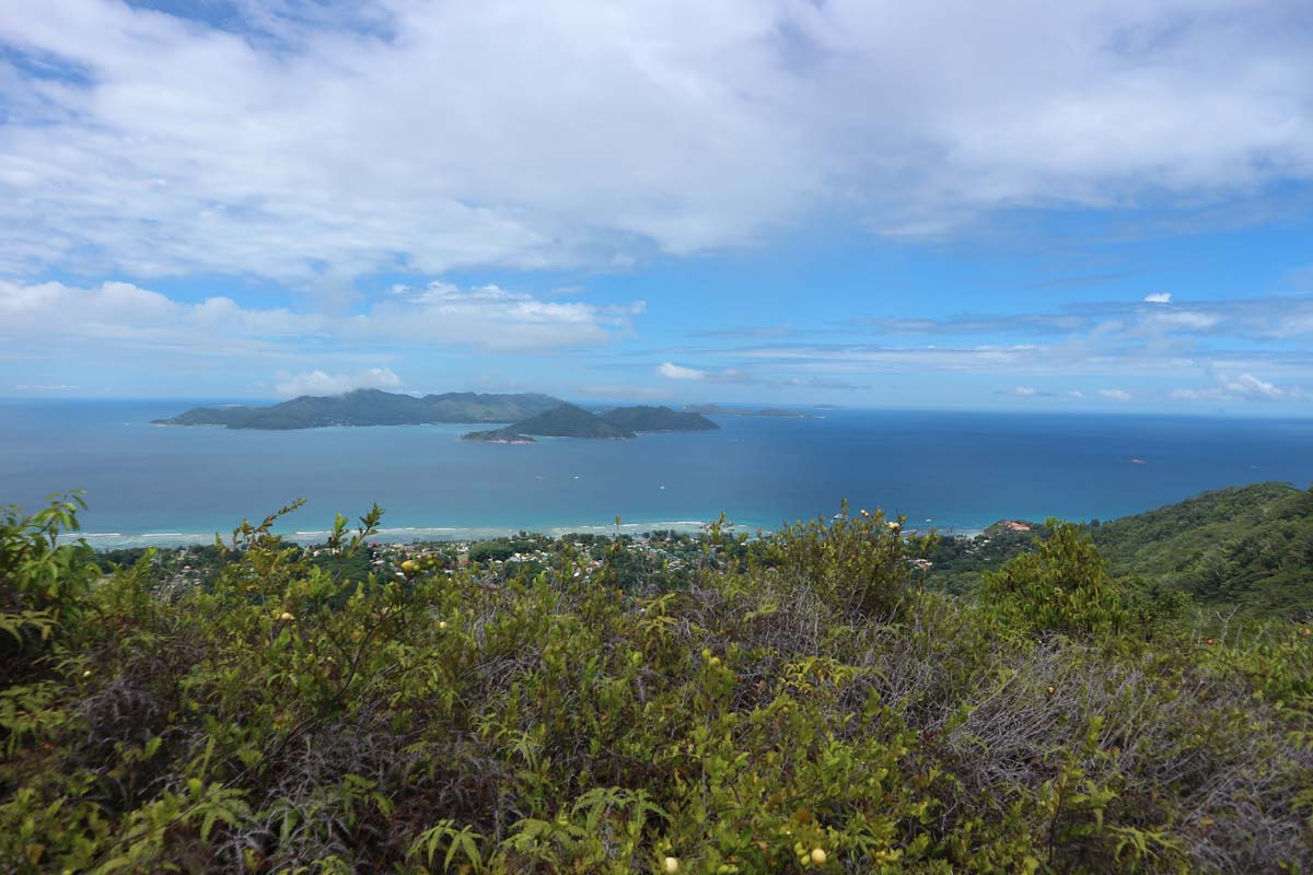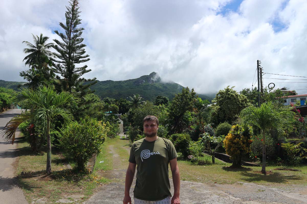 Лежачи в номері під кондиціонером ми розмірковували про те що у голові просто не вкладалося, наскільки Сейшели можуть бути фізично складною поїздкою. Добре, що ми любимо такий тип поїздок і, на щастя, ці джунглі розвіяли всі наші страхи, що 9 днів на Сейшелах буде нудно. Час вечірнього заходу сонця. У цей час туристи знаходять собі затишні пляжики і спостерігають за красою. В одному із номерів жили хлопці з Німеччини. Вечорами ми з ними годинами розмовляли на різні теми та обмінювалися туристичним досвідом. Вони нам розповіли, що вже встигли піднятися на найвищу точку острова. Нам карти також показували, що це можливо. Але до карт ми ставилися з побоюванням вже. Тепер ми хоч чуємо підтвердження від очевидців. На пік вело кілька доріг із різних кінців острова. Ми вирішили піднятися однією, а другою спуститися. Спроби знайти першу дорогу в джунглях з тріском провалилися, приблизно з таким же тріском, з яким ми через пару годин провалюватимемося. Місцеві запевнили нас, що на карті помилка. І дороги такої нема. Гаразд, пішли на іншу частину острова. У цей день ми були без велосипедів. Добирання між частинами острова було цілим походом. Коли ми почали підбиратися до початку стежки, асфальтована дорога круто йшла вгору. Навіть такою дорогою підйом зайняв багато зусиль. Добре, що без велосипедів. Хвилин через 30 почалася дорога ще крутіша крізь джунглі. Незабаром дорога вирівнялася, але стежка була зарослою. Висота живого тунелю була десь по пояс. Якийсь час ми йшли навпочіпки і просто проривалися крізь рослини. На дорогу тепер це зовсім не було схоже. Але до панорами ми зрештою дісталися.