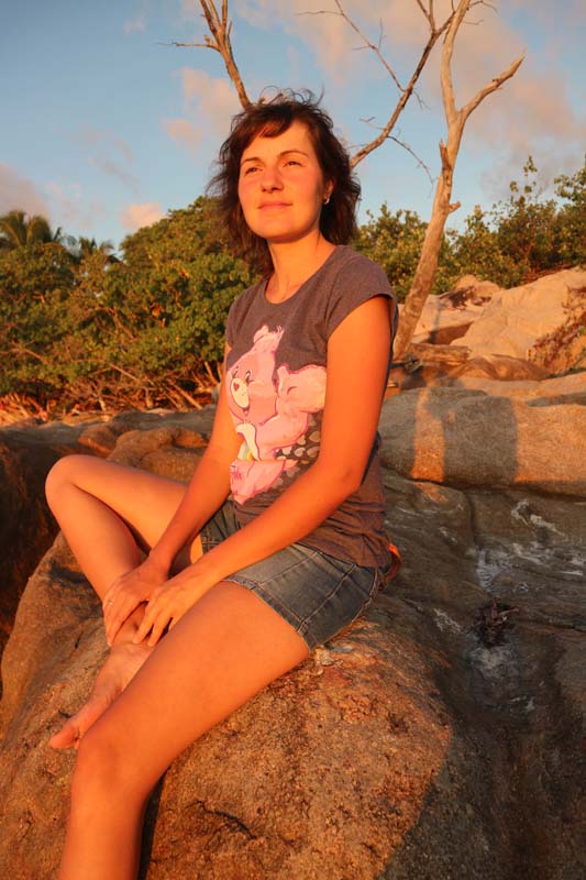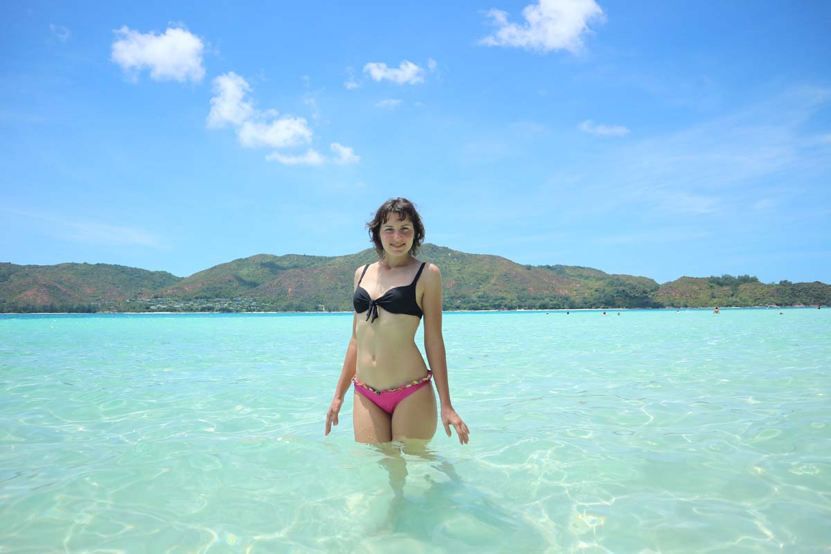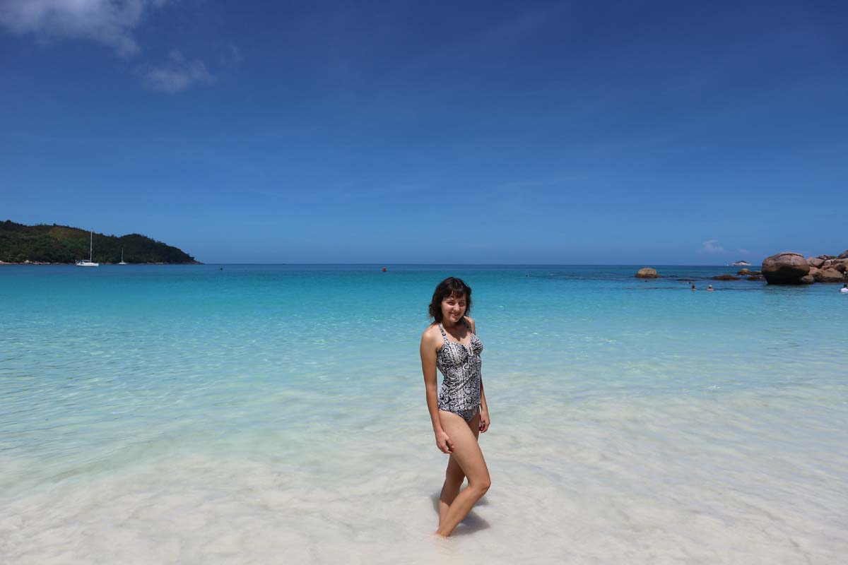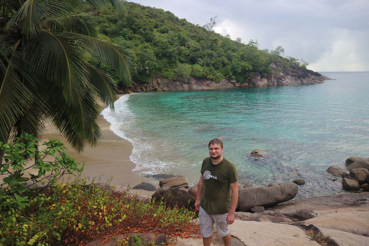 Ми у Києві переймались, що на Сейшелах буде нудно. Та тут походу взагалі, мабуть, такого слова у словнику немає. Пляж у порівнянні з попереднім набагато менший. Але який він затишний і ласкавий – словами не передати. Даша відзначила цей пляж, як найкращий на Прасліні. Мій же найкращий пляж за подорож чекав нас на наступному острові. У променях вечірнього сонця хотілося нескінченно хлюпатися в сильних, але ніжних хвилях блакитного океану. Персонал готелю готував столик для романтичної вечері. Дорога назад була досить короткою і без гір оскільки можна було вийти через чудову територію дорогого готелю. На Прасліні є безліч інших доступних пляжів. Але в будь-якому випадку Анс Лазіо і Анс Жоржетт дуже і дуже красиві і їхнє відвідування варте всіх труднощів добирання. На цьому пляжі із кінцями забув одну зі своїх улюблених футболок.