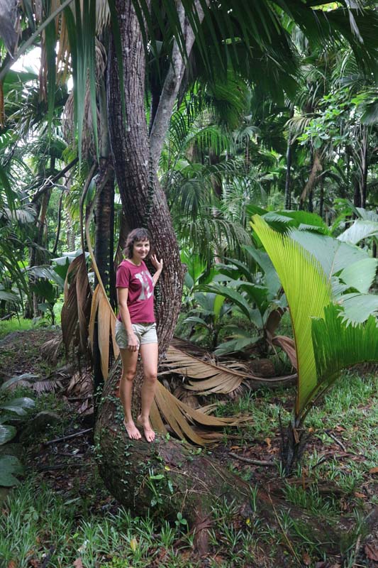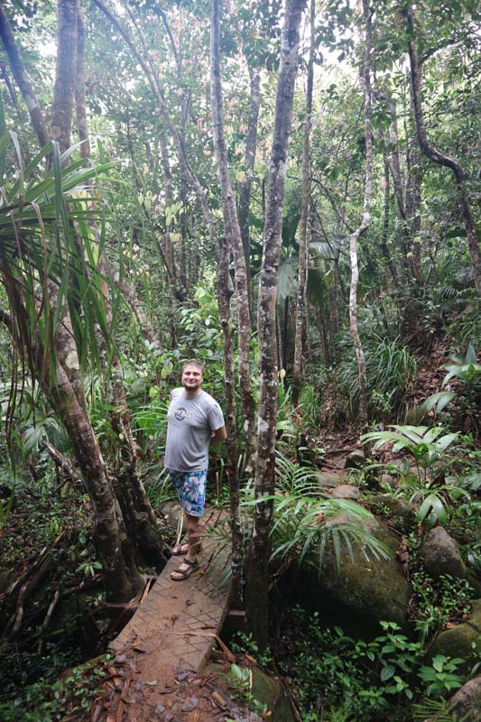 Правда стежка була дуже непереконлива, можливо бабуся вирішила просто позбавитися нас відправивши до урвища. Але, як не дивно, наші карти з нею були згодні і справді спрогнозували, що за годину ми дійдемо до мети. Дорога була дикою, вузькою і темною. Щільне листя добре закривало від сонячного світла своїх мешканців. Часом кажани пролітали над нашими головами. Але ми знову переможці, черговий та останній трекінговий маршрут на Прасліні пройдено. Ми ще не знали, що ці маршрути були розминкою перед наступним островом. Там проходження через джунглі – тільки хардкор!