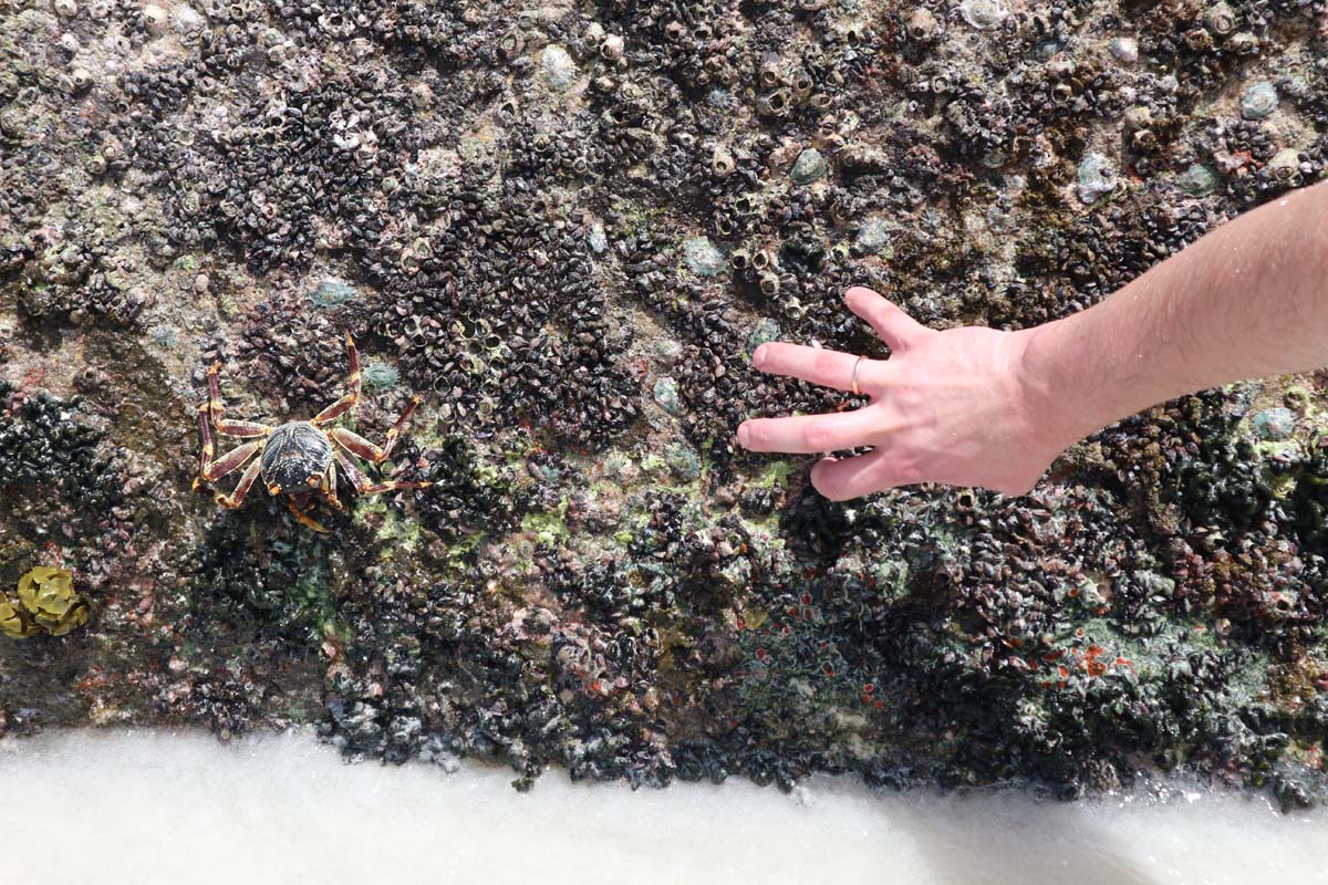 Головне ніде не навернутися. Камені різних відтінків, чим ближче до жовтого, тим гарячіше у ніжки. Коли плаваєш, уздовж каміння бігають сотні смачних крабів і якихось рибок, що стрибають.
