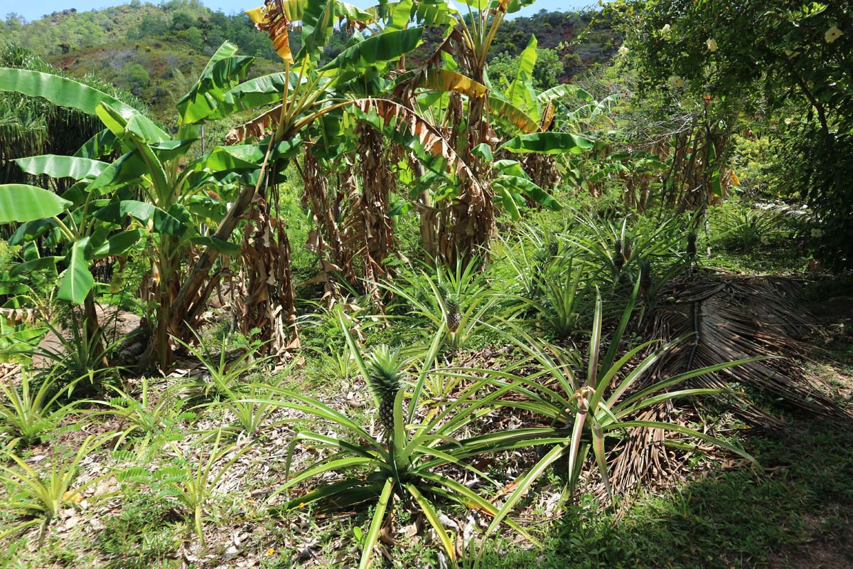 Навколо росли кокоси, мандарини, саусепи, джекфрути та інші фруктові дерева. Maps.me показувало, що потрібна нам доріжка зовсім поруч, треба лише 100 метрів пролізти в гору через непрохідні джунглі. Я спробував прорватися через ліс. Але за хвилину боротьби я навіть на десять сантиметрів не зрушив. Джунглі тут були дуже густими. Ми зазнавали фіаско. Нам треба було дуже далеко повертатися, щоб пробувати йти черговою стежкою. Ми навіть перелазили через невелику річку. Приблизно за 3 години ми добралися до пляжу. Саме сонечко вийшло. Розклад був оптимальний. У горах набагато приємніше йти, коли не палить сонце, а на пляжах сонечко дуже добре. Поплавали в океані. Було почуття, що ми мало налазили за сьогодні. Ми вирішили перебратися на другий пляж джунглями. Але не стандартною стежкою, де ми вже були, а більш скороченою. Не факт, звичайно, що карти зараз говорять правду, але ми перевіримо. Початок був уже відомою нам стежкою. Але коли треба було повернути, то замість повороту ми виявили чужий будинок зі злою бабусею. Бабуся була зла, напевно, тому, що кожен день чергові туристи картою приходять до її будинку. Але на щастя, вона виявилася не такою жорстокою, як виглядала, на перший погляд, і відкрила нам секрет таємної стежки за жовтими квітами.