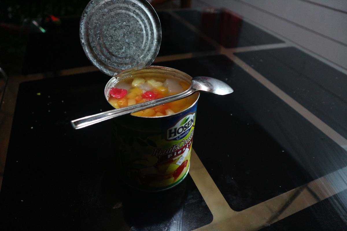 Хотілося ніколи не йти, але тотальна темрява дала нам чітко зрозуміти – повертайтеся до готелю. Сьогодні ми вечеряли макаронами із консервами з тунця. А на десерт купили велику банку консервованих екзотичних фруктів.