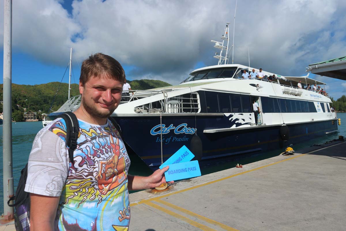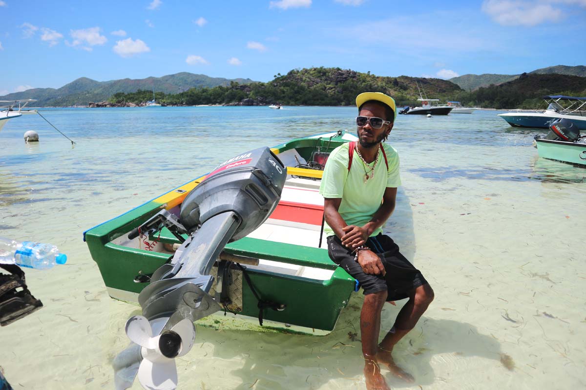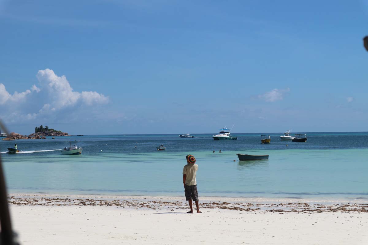 З самого ранку, дочекавшись автобуса, ми вирушили на пляж Дьор. Там можна домовитись про трансфер на інші острови. Щоправда, незрозуміло, де і з ким. Але варто було тільки вийти на пляж, як купка растаманів, що релаксують, обернула свої погляди на нас і один з них відразу запитав куди будемо пливти. Ми сторгувалися за 60 євро за маршрут Праслін-Курйоз-Сан П’єр-Праслін. Точніше, як проходив торг, він сказав 35 євро з особи, я запропонував 30, на цьому й вирішили. Правда він потім все ніяк не міг упіймати човен, який нас повезе, але це вже технічні дрібниці.