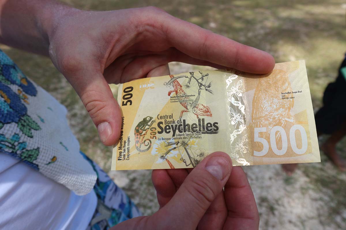З їжею виявилося все досить просто та дуже дешево. На трьох основних островах є мережа їжі на винос “Take away”. Страви коштують 50 чи 60 рупій. У страву входить рис, м’ясо з підливою, салат та соуси. Іноді траплялася смачна лазанья. Розмір страви достатній, щоб наїстися здоровому чоловікові на світанку сил. Наприклад, на Прасліні накладали такі порції, що я навіть до кінця здолати не міг. По заселенню в готель потрібно у місцевих дізнатися де найближчий Take away. На острові Ла Діг була кількість Take away більше ніж інших ресторанів. Також для сніданків потрібно з собою привезти хліб та сири у багажі. Це точно не порушує правила ввезення на острів. І можна буде робити собі бутерброди на сніданки до кави або чаю. У місцевих маркетах не так дорого, як можна собі уявити. Проте приготувати їжу самостійно з продуктів виходить трішки дорожче ніж у Take away. Оскільки ці ресторани не працюють у неділю, то це і буде день, коли в будь-якому випадку потрібно буде собі щось приготувати. Наш класичний варіант вечері був таким: