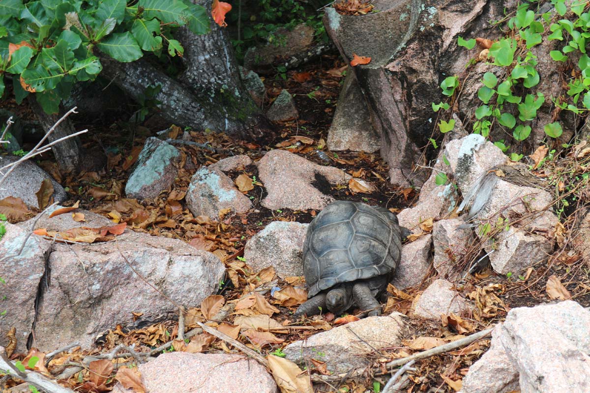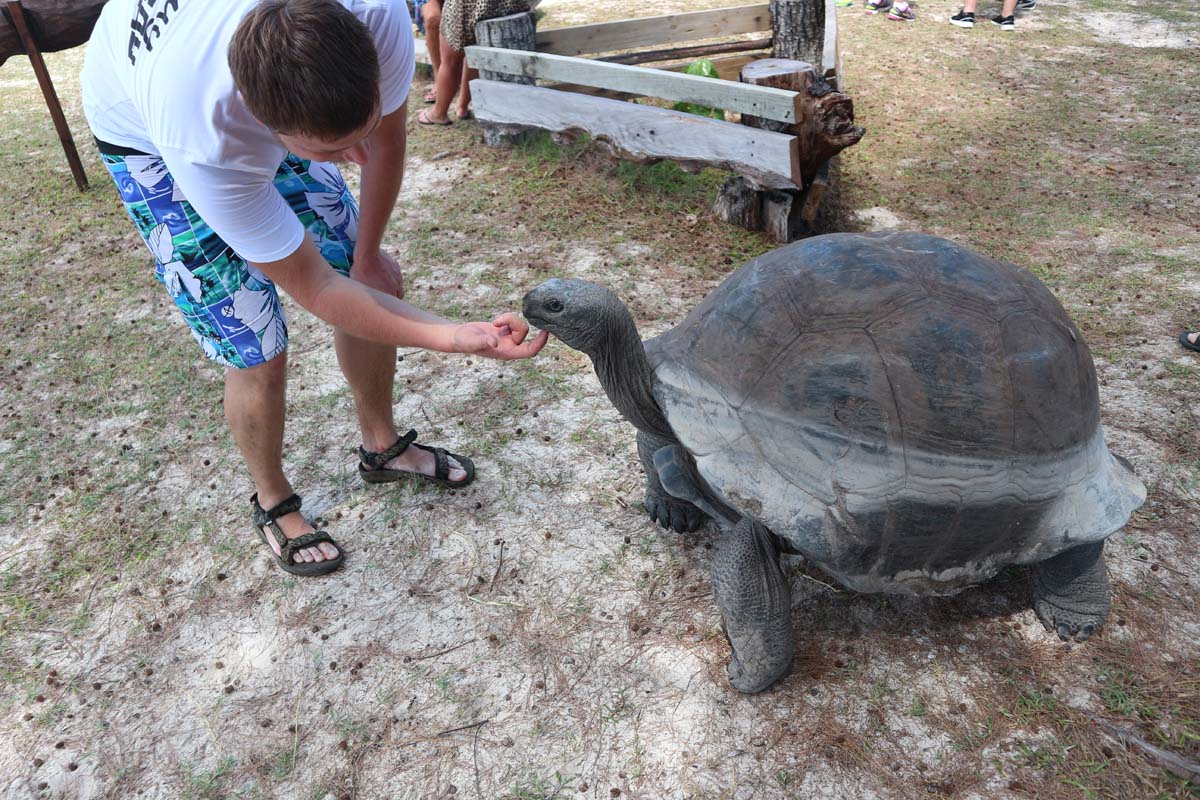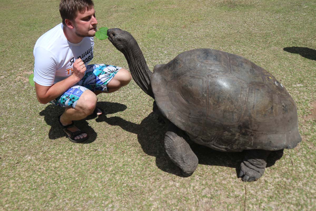 За вхід на острів потрібно було платити окремо по 200 рупій (12,5 євро). Черепахи з радістю тяглися до туристів, а ті у відповідь їх годували листям з дерев. До речі, на острові Ла Діг такі черепахи взагалі дикуном повзатимуть. Тут їх, в принципі, теж ніхто не тримав саме в цій частині острова. Але ласе місце саме тут.
