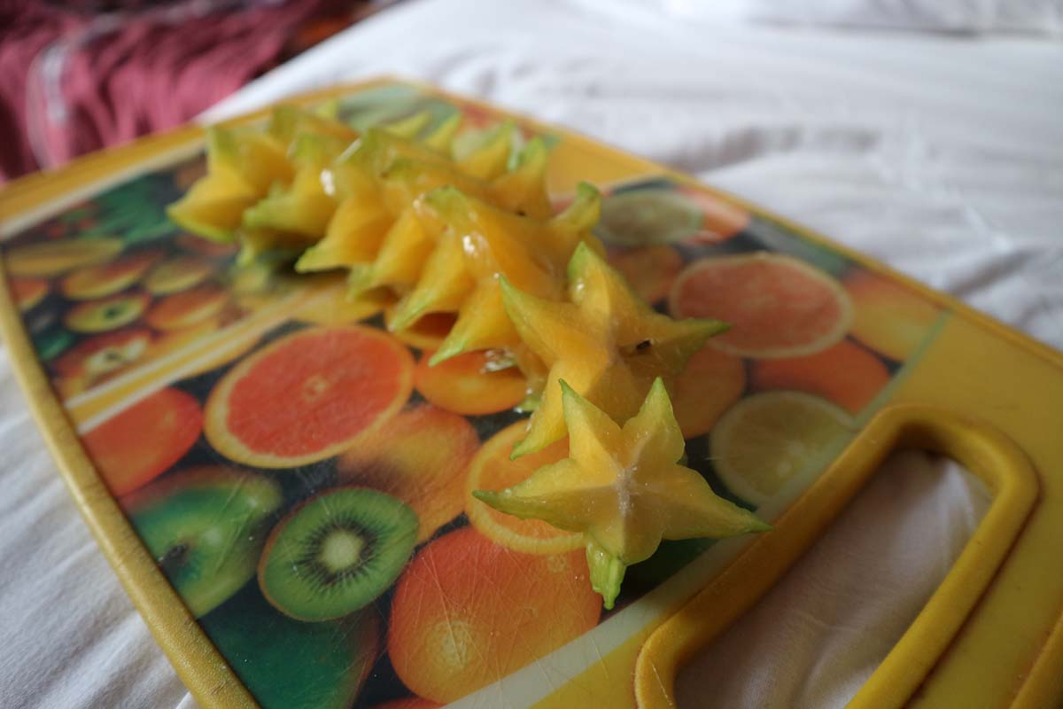Неподалік автобусної зупинки місцеві жителі продавали екзотичні фрукти. Спершу ми хотіли купити собі бананів. Але в результаті за 25 рупій (1,5 євро) у нас були і банани, і пара манго і карамболька.