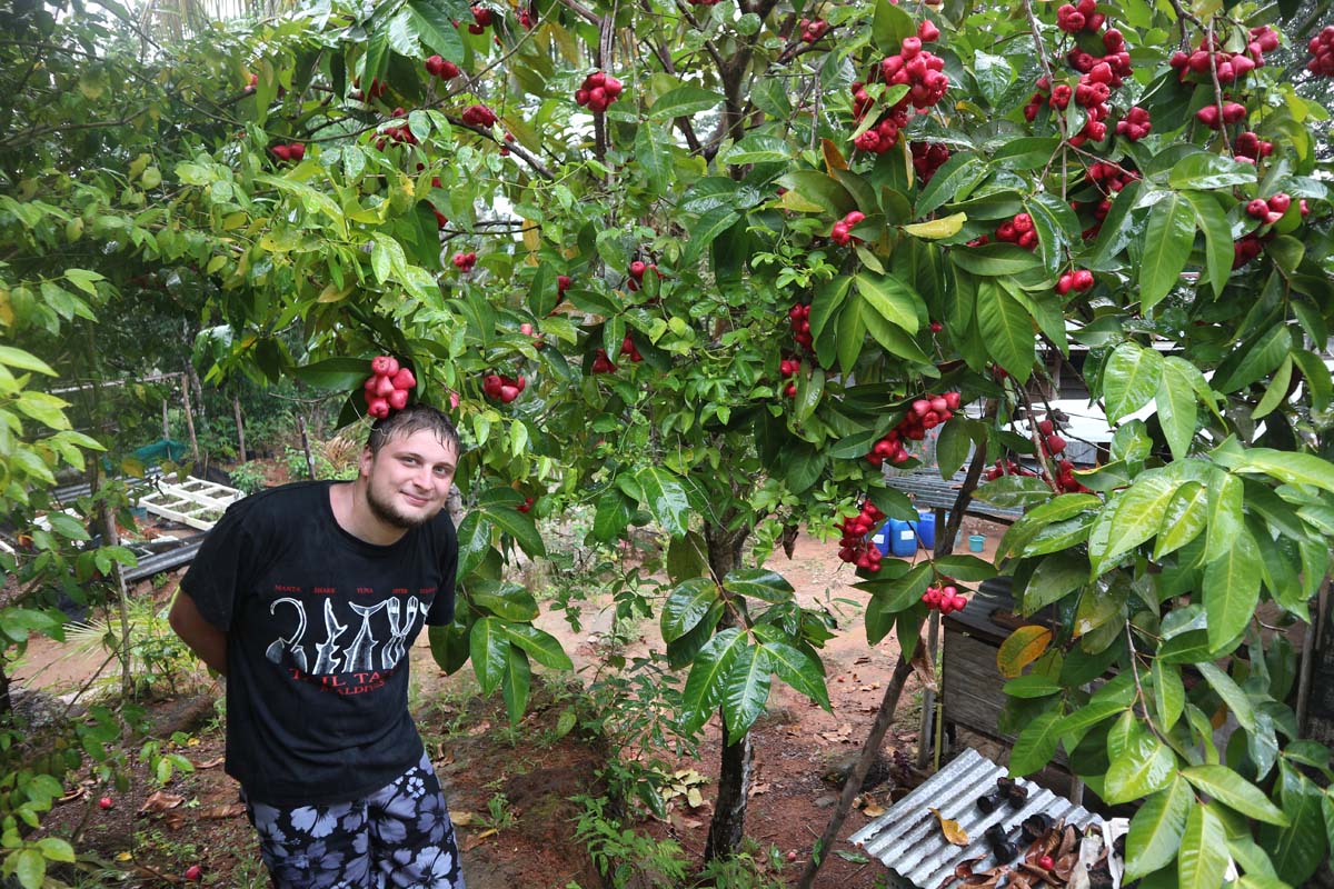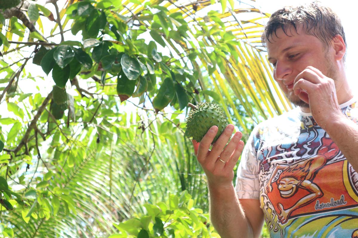 За красою цей маршрут був найкрасивішим за наш досвід. Соковиті зелені рослини та екзотичні фрукти постійно тішили очі. Проходили повз будиночок, хлопець який там жив дуже зрадів нам і покликав нас погладити його кажана. Правда миша не була в захваті від нашого візиту. До речі кажанів тут багато, вони навіть літають, коли ясно. Літають небом спокійно, як наші ластівки. Знаходять собі фруктове дерево, чіпляються своїми лапками, звисають головою вниз і починають трапезу.
