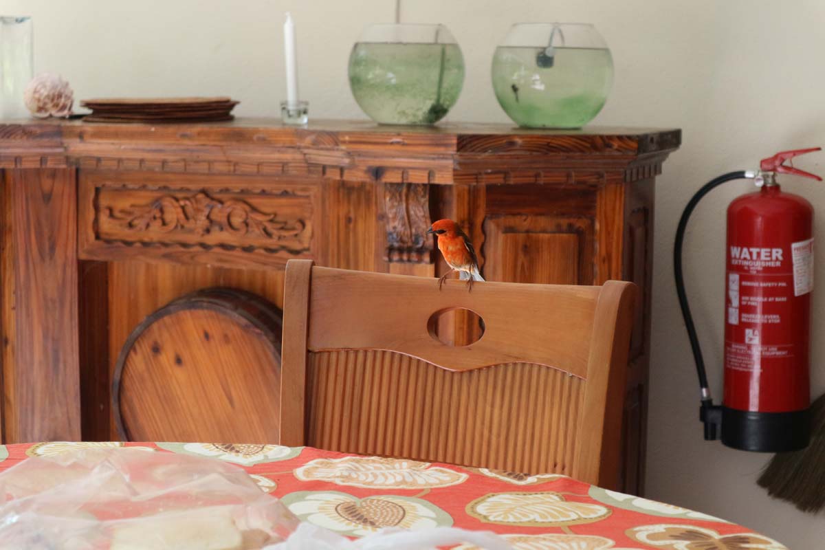 Щоранку до нас на сніданок прилітала червона пташка розділити нашу трапезу.