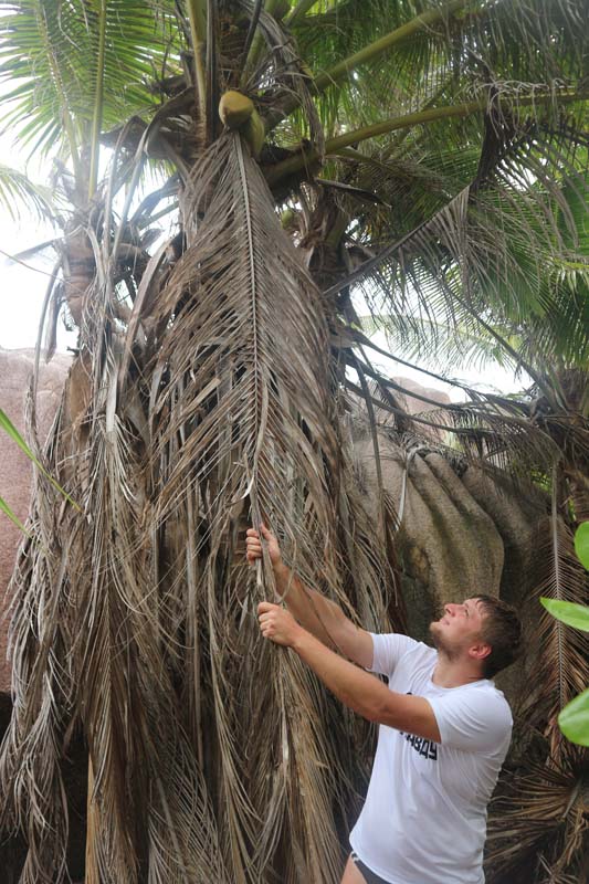 На одній із пальм висіло два апетитні гігантські кокоси.