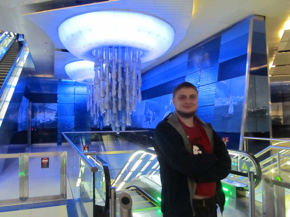 Було близько п’ятої ранку, із невеликою сумочкою продовжуємо нашу довгу подорож. Наш багаж ми здали ще у В’єтнамі. Метро починає працювати близько шостої ранку, так що ми не поспішаючи пройшли всі формальності, отримали штамп, просканували очі і по черзі пройшли ванні процедури в аеропорту. До метро йшов ескалатор, всі сиділи, як на низькому старті вичікуючи момент відкриття. І ось це відбулося, ескалатор запрацював, тепер все треба у швидкому темпі, щоб встигнути на ранній автобус. Їхати треба було з пересадкою на станції, яка входить у топ 10 найкрасивіших станцій світу.