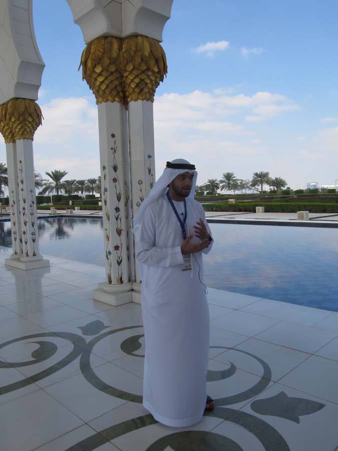 Здалеку мечеть здавалася ще біліша ніж у рекламі. Від автобусної зупинки треба було трохи пропиляти, оминаючи її стіни по периметру, стіни були досить довгими, невдовзі ми дійшли до пропускного пункту і нас повіз електрокар на територію. Сказати, що на території було красиво, це крапля в морі, порівняно з тими почуттями, які переповнювали від побаченого. Це було неначе вдруге пережити той момент, коли ти вперше бачиш Тадж-Махал.