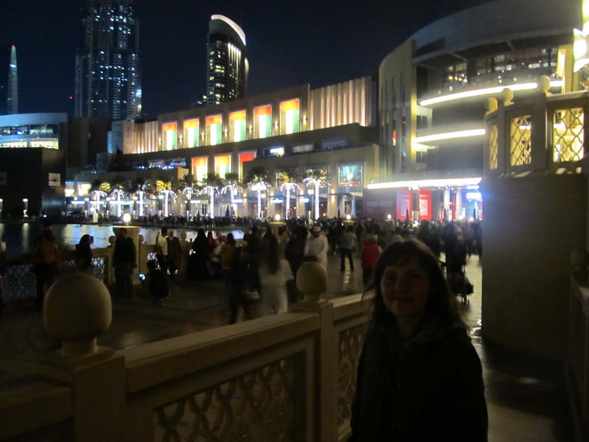 За крутістю ефектів дубайський фонтан значно відставав від фонтану з в’єтнамського острова Вінперл. Зате атмосфера кохання та романтики тут панувала така, якої не було на шоу у В’єтнамі. Коли пісня закінчилася, ми з Дашею в один голос відмітили саме шарм цього місця. Коли ти перебуваєш на цих вуличках уздовж фонтану ти немов потрапляєш у країну, де існує лише одне почуття – кохання. Відстань між піснями не давала розвіятись цьому почуттю. Ми навіть поїсти не змогли з першого разу, оскільки поки що шукали собі кафе, то вже треба було повертатися і дивитися наступний танок фонтанів. Якби я відпочивав в еміратах, то безперечно кожен вечір тут проводив би, це просто чарівно.