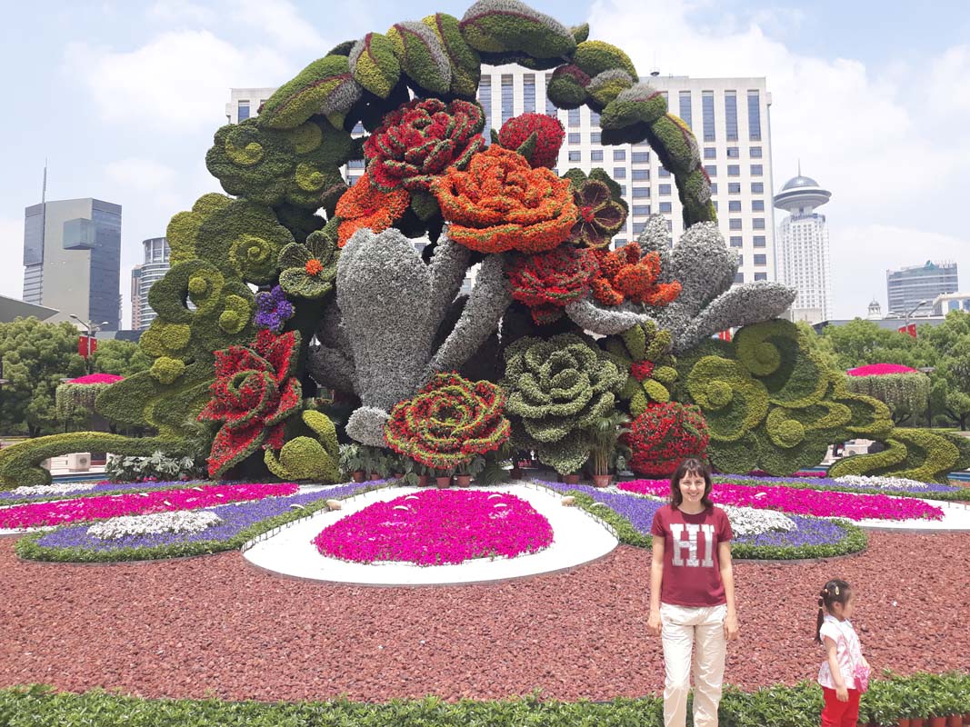 Дубль два! Вдамо, що жодних нічних складнощів не відбувалося і продовжимо подорож. Біля входу до парку простягнувся міський канал. Уздовж каналу просто шедеври з квітів та дерев. Видно, що на клумбах попрацювали окремо над кожною квіточкою. Канал нескінченно довгий та клумби з доріжками теж. Нам треба дістатися центральної пішохідної вулиці Пекіна. Найкраще під’їхати автобусом. А ось і розклад зі списком зупинок. Іноді по одному ієрогліфу, іноді по три. Це все, що ми з’ясували з розкладу. Натомість чоловік за участю підключився до пошуку нашої зупинки “Тяньмень”. До речі, звучить як два ієрогліфи. Чоловік показав жестом йти за ним, і ми вирушили вже втрьох. Вирушили кудись далеко в похід. Оскільки мовний бар’єр був повний, то йшли ми у задумливій тиші. Як добре, коли є про що помовчати! Чоловік правда зробив спробу обговорити з нами важливі частини прогулянки китайською, але ми крім слова “Тяньмень” та “Комутохеровато” взагалі жодного слова не знали. Наш похід закінчився на одній із зупинок, де китаєць передав нас кондуктору в автобусі. Їдемо. Чесно кажучи, на карті піша вулиця була відзначена зовсім в іншому місці та іншій частині міста. Але краєм ока в одному з поворотів ми побачили щось туристичне та красиве.