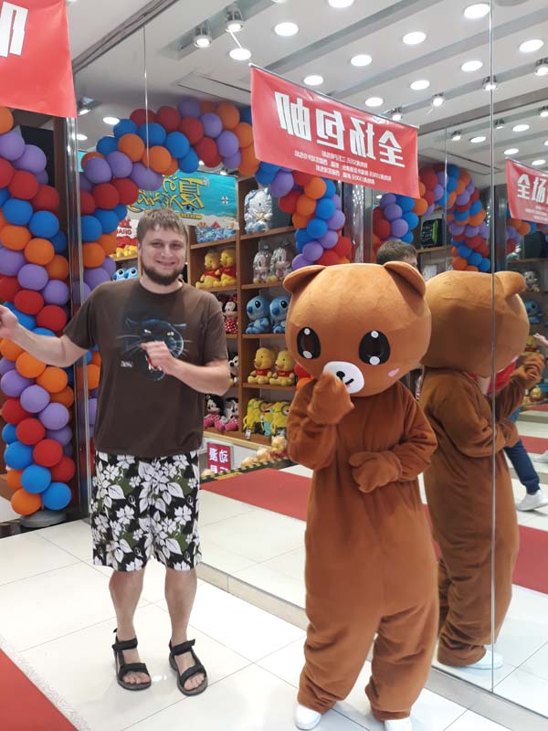 Шанс виграшу іграшки дуже високий. Живий доказ – це відвідувачі з пакетами іграшок у руках. Схоже, ми тільки-но були в самому милому закладі Китаю. Сьогодні навігатор нас повів у готель через чудові парки з великими озерами. Дуже незвичайна краса, коли ми вдвох стоїмо біля темного озера, навколо густі дерева, за деревами височіють яскраві хмарочоси. На добраніч Китай.