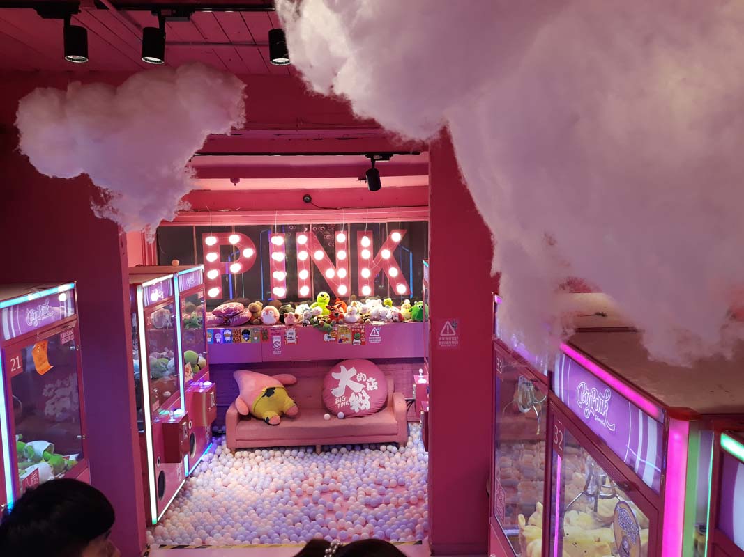 Ось чим порадувало місто, то це вулицями району Танзіфанг. Правда їжа виявилася настільки дорогою, що нам довелося покинути на якийсь час район для трапези в іншому районі. Район складається із десятка вузьких вулиць, вздовж яких розташовані різні цікавості. Все воно виглядає настільки незвичайно, ніби ти опинився в новій країні зі своїми звичаями та архітектурою. Це дуже затишне та тепле місце, туристичний рай. Кожен магазинчик або кафе намагаються виділитися на краще. Сотні дрібничок на стінах і навіть над головами туристів. Це місце знову нагадує Гаррі Поттера, начебто серед світу маглів заховалися вулиці для чарівників. Буквально за перехрестям широкий і суворий Шанхай, а тут зовсім вузький та інший. Нас поманив до себе рожевий будинок, з якого світив яскравий рожевий колір. Усередині було безліч ігрових автоматів, наповнених плюшевими іграшками. З портрета на нас дивився лідер однієї дуже відомої азіатської країни з м’якою іграшкою в руках. Все навколо рожеве та дуже мімімішне. Можна було б припустити, що це триповерховий будиночок Барбі. Ватні хмарки мені настільки замилили око, що я не помітив під ногою пластикових кульок.