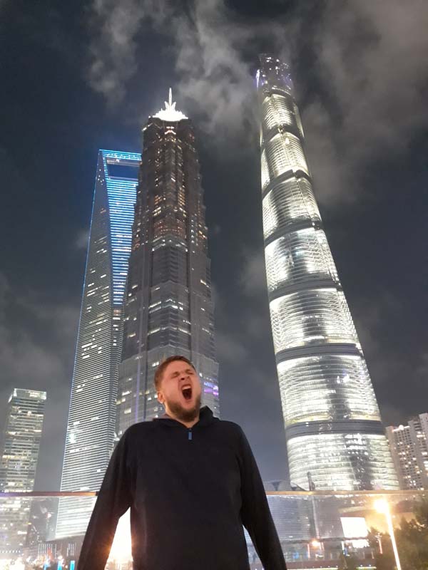 Лава, зірки і т.д. У всякому разі, нам так пояснював англійський диктор з колонок. На практиці там було щось зламане чи недороблене і трохи по-дитячому наївне. Нарешті ми гуляємо по променаду, а навколо сяючі хмарочоси різних дизайнів. Хмари були низькими і чіплялися за верхівки будівель. Якби в мене була на вибір тільки одна визначна пам’ятка Шанхаю, то я однозначно вибрав би цю прогулянку. Шкода наш фотоапарат цієї краси сфотографувати не може. Я б, чесно кажучи, готовий був усю ніч стояти і дивитися на них. Але холодний буревій нас швидко направив до готелю. Назад ми добиралися на метро. Вдруге бачити «лаву» не довелося.
