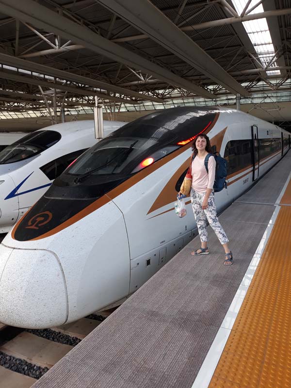 Пекін від нас був на відстані понад тисячу кілометрів, але для китайських поїздів це дрібниці. Ми летіли, розтинаючи повітря на швидкості 350 км/год. Усього якихось 4,5 години, і ти у столиці. Було трохи тривожно, а що як захитає і як тоді пережити поїздку. Але, як не дивно, поїзд йшов дуже спокійно, і швидкість усередині тіла не відчувалася. Але далекі будівлі якось підозріло швидко пролітали. Ще ми зрівнялися з літаком, що паралельно йшов на посадку.