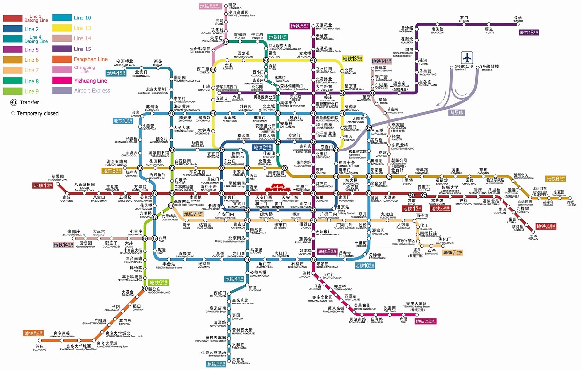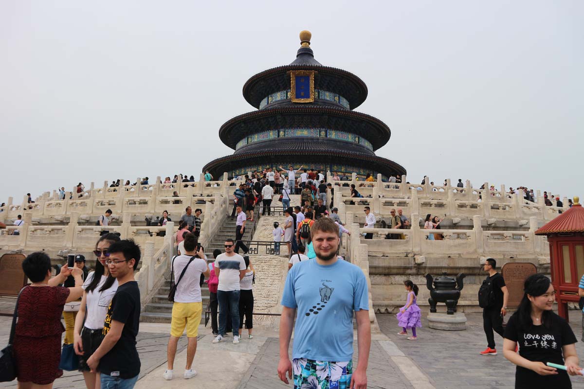 Першою точкою маршруту був запланований Храм Неба. Ми спустилися у метро. Побачили схему з купи гілок. Отримали портативну схему суто китайською мовою. Отримали другу схему англійською з розміром шрифту близьким до нуля. Порозумітися з касиром було нелегко. У результаті ми вийшли ще далі від храму, ніж були спочатку. Вдруге в метро повертатися не хотілося. Пересадки між гілками зроблені на такій відстані, що ти проходиш мінімум станцію пішки, поки пересядеш з гілки на гілку. А гілок багато. Ще потрібно було уважно стежити, оскільки не всі станції, що перетинаються, є пересадочними. Точніше одна була не пересадочною, але у дуже зручному місці для пересадок.