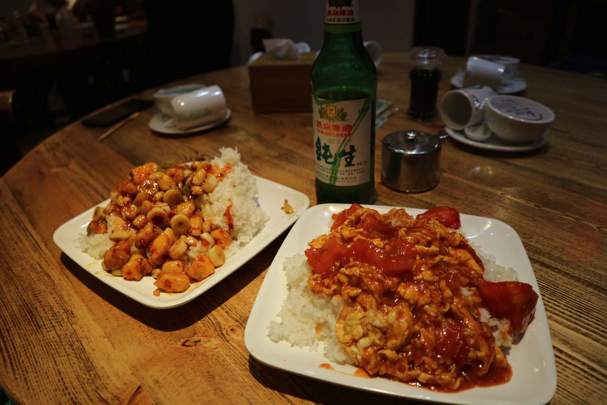 У Даші був рис із помідорно-яєчною поливою. У мене був рис із кількістю інгредієнтів, що перевищує кількість зірок у дорогому нічному готелі. Як же круто, що ми майже два тижні будемо їсти таку смакоту! Не один китайський ресторан за кордоном навіть близько не приготує того, що тут подають у місцевих ресторанчиках. Ми в Києві після поїздки спеціально пішли до ресторану Пекін і поневірянь переконалися, що ні за цінами, ні за смаком навіть порівнювати не можна ці кухні. Якщо не помиляюся, то дві великі страви та пляшка 0,5 пива у ресторані в центрі Пекіна нам обійшлися в 42 юаня (6,5$). І те, ми явно погарячкували, замовивши дві страви. Можна було спокійно наїстись і однією. Як я люблю це слово – подорож отримала статус “Гастрономічна!” першого ж дня. Але в принципі такий статус у перший день і мають отримувати подібні подорожі.